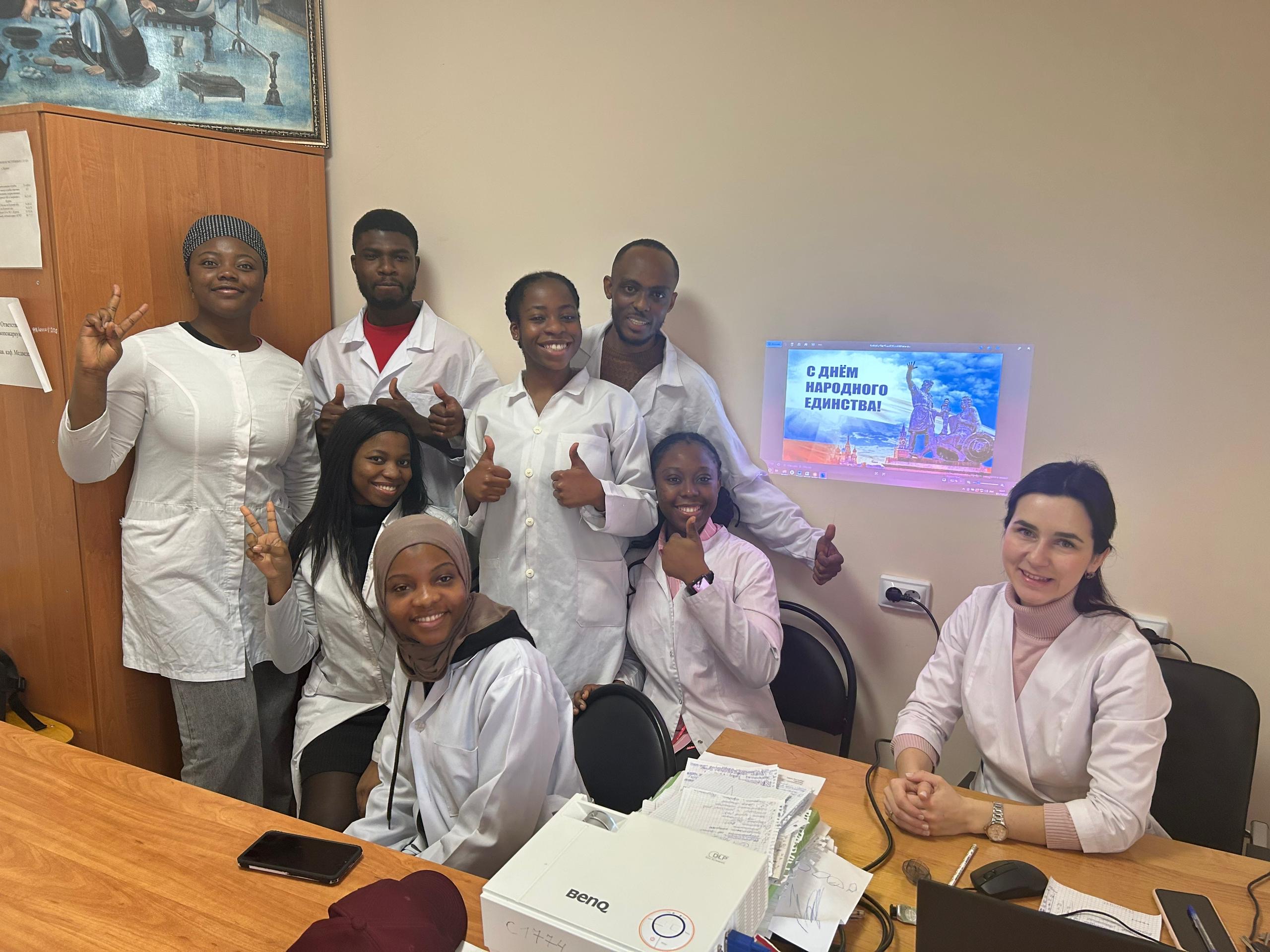В преддверии Дня народного единства 4 ноября 2025 г. на кафедре поликлинической терапии и общей врачебной практики под руководством асс. Объедковой Н.Ю. состоялся круглый стол с иностранными студентами, обучающимися на 5 курсе международного факультета, посвященный истории данного праздника. Ребята узнали о событиях 1612 года, когда народное ополчение под руководством Кузьмы Минина и князя Дмитрия Пожарского освободило Москву от польско-литовских интервентов. Период Смуты был одним из самых тяжелых в русской истории. После пресечения династии Рюриковичей государство погрузилось в кризис. Страну раздирали гражданские конфликты, на престоле оказывались самозванцы, а реальная власть была ослаблена. В результате бояре допустили в Москву польские войска, что поставило под угрозу сам суверенитет России. В ответ на эту угрозу в Нижнем Новгороде стали формировать народное ополчение. Инициатором выступил земский староста Кузьма Минин, который призвал горожан собрать средства для создания войска. Военным руководителем ополчения стал князь Дмитрий Пожарский. Осенью 1612 года их войска подошли к Москве и после тяжелых боев смогли взять под контроль Китай-город, а затем и Кремль. Эта победа создала условия для преодоления кризиса. В 1613 году Земский собор избрал на царство Михаила Романова, что положило начало новой правящей династии.