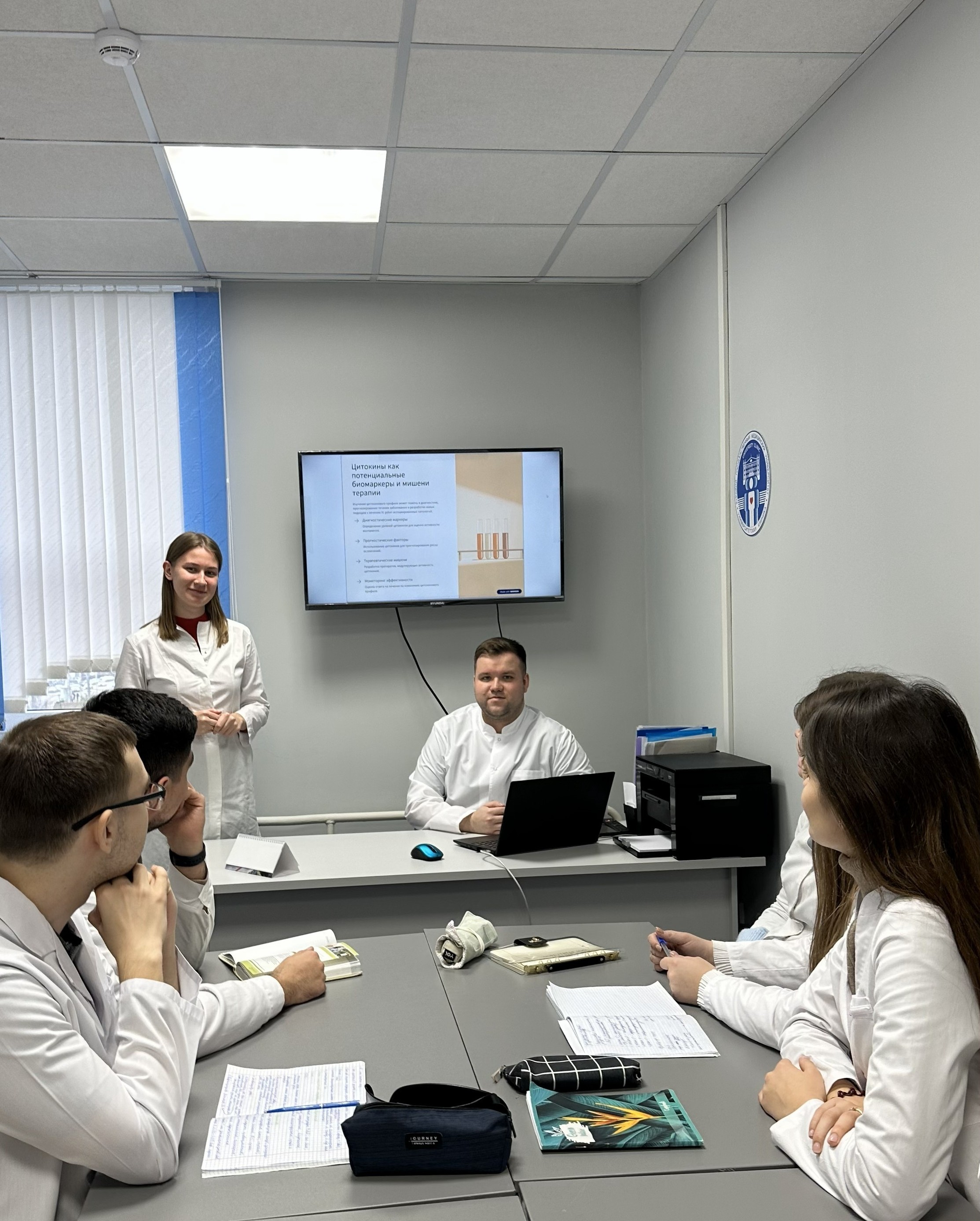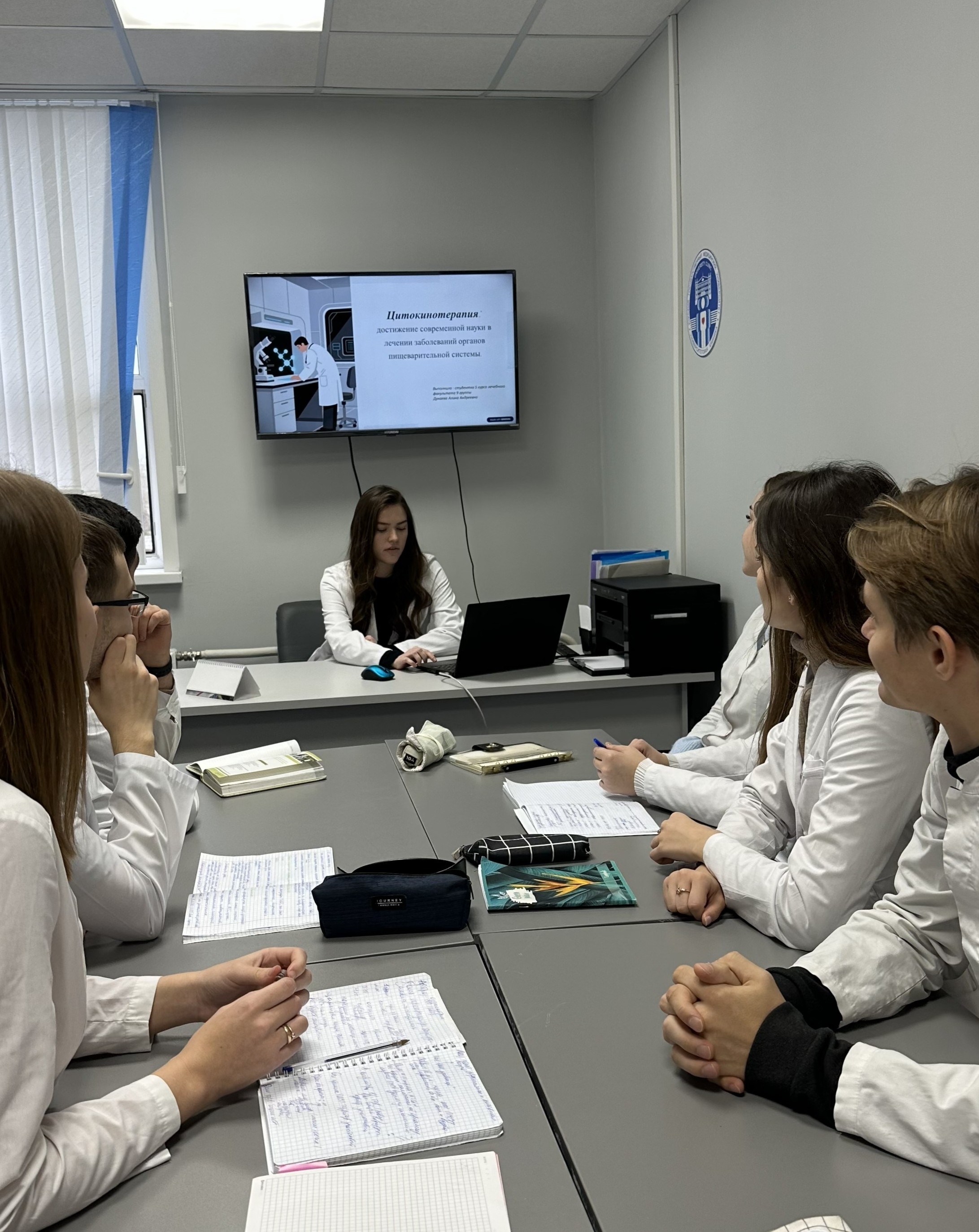 19 ноября 2025 года на кафедре поликлинической терапии и общей врачебной практики состоялось очередное заседание студенческого научного кружка на тему «Роль цитокинов в развитии и диагностике заболеваний желудочно-кишечного тракта» под руководством ассистента Фомина Д. И.