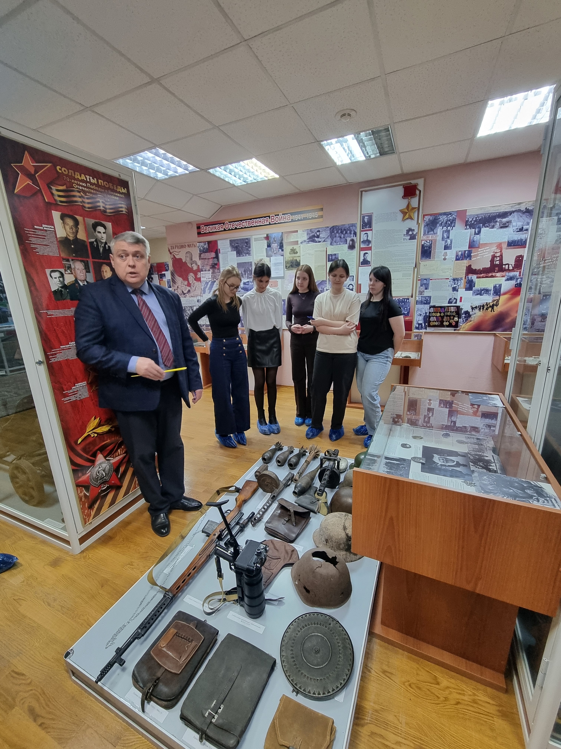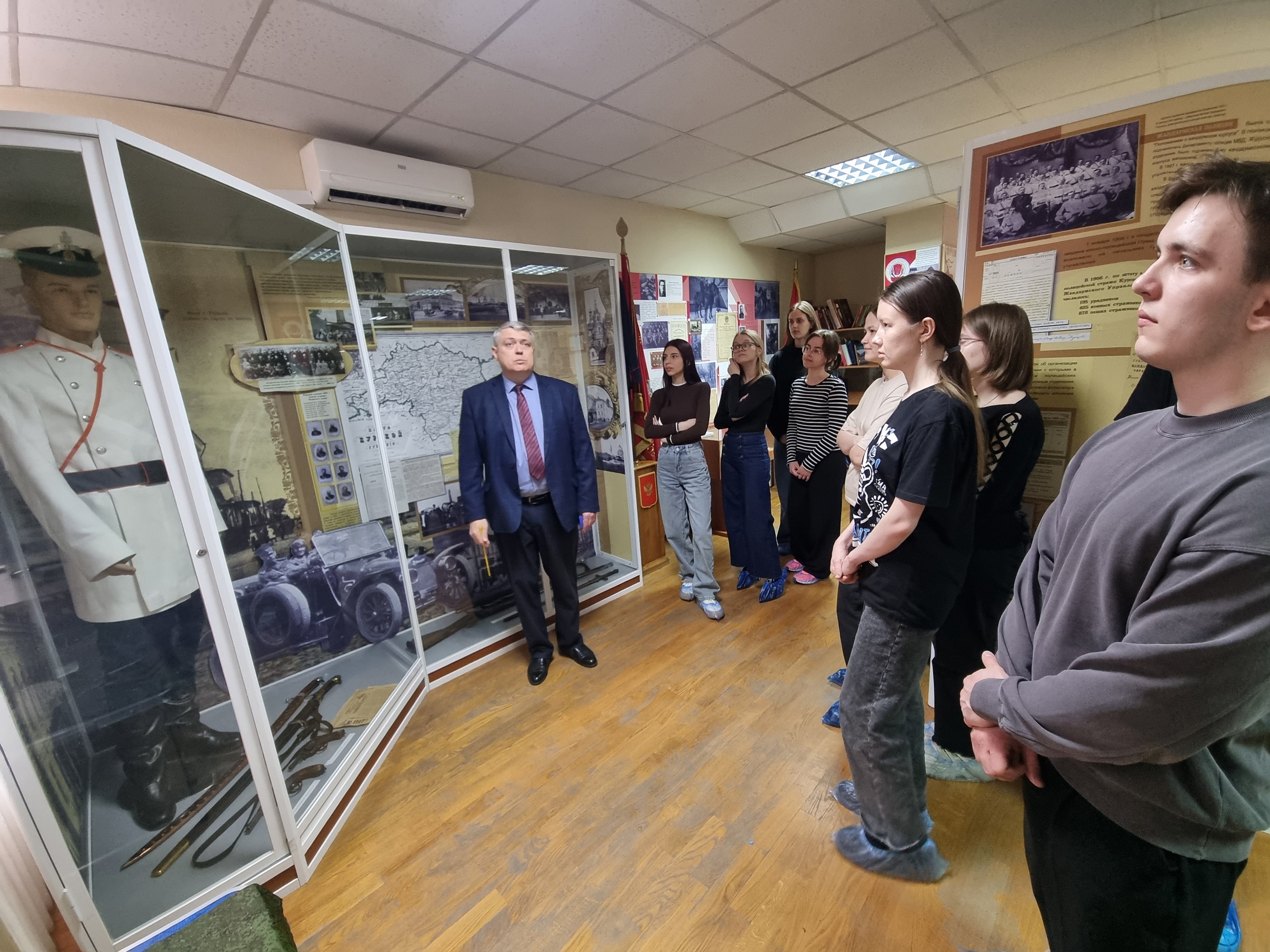В ходе экскурсии студенты познакомились с историей правоохранительных органов России, узнали о становлении и развитии полицейской службы в регионе, о различных видах формы полицейских и милиционеров, их вооружении, а также о значимых событиях в истории страны. Главный хранитель фондов музея, Дмитрий Александрович Азарцев, рассказал о земляках, которые служили в МВД и проявили себя в годы Великой Отечественной войны, во время войны в Афганистане, Чечне и об участниках СВО.