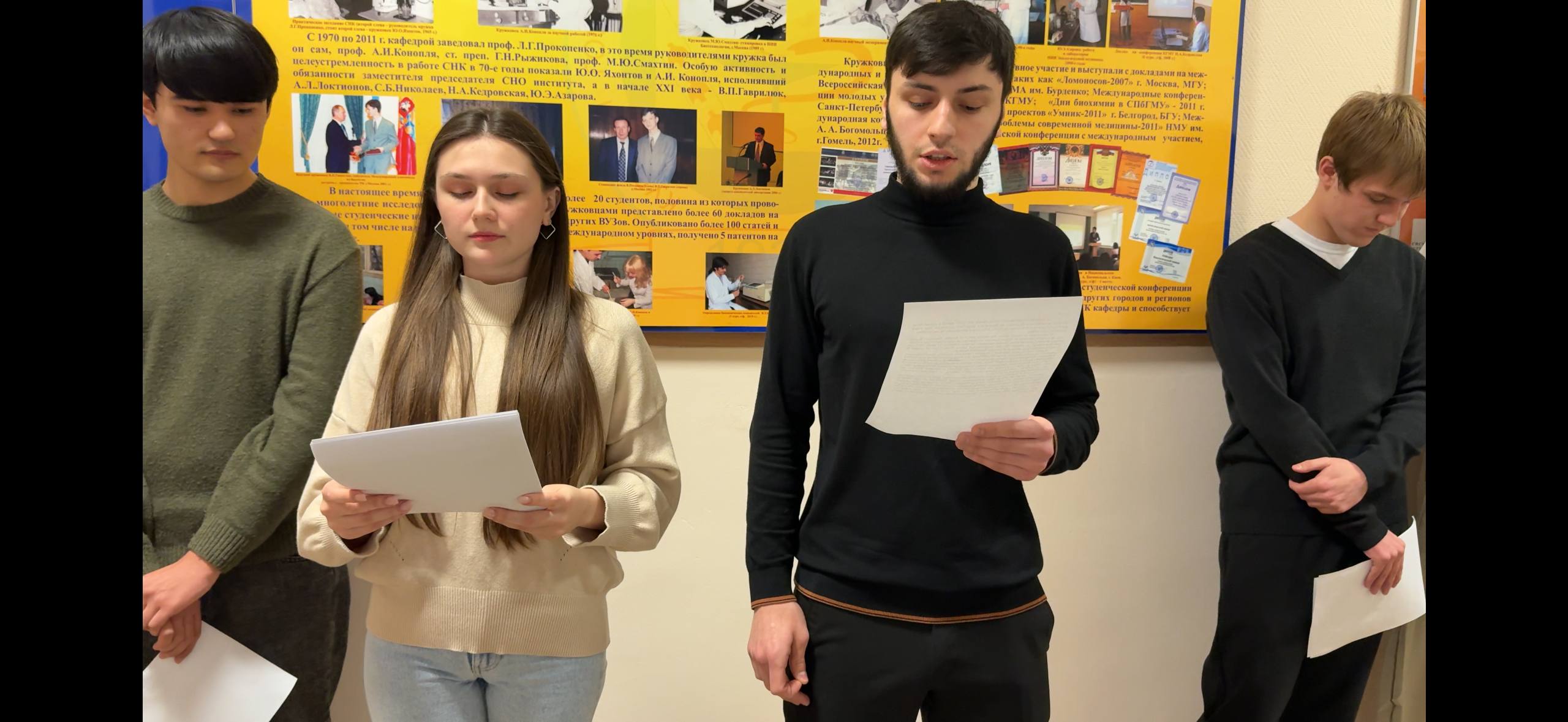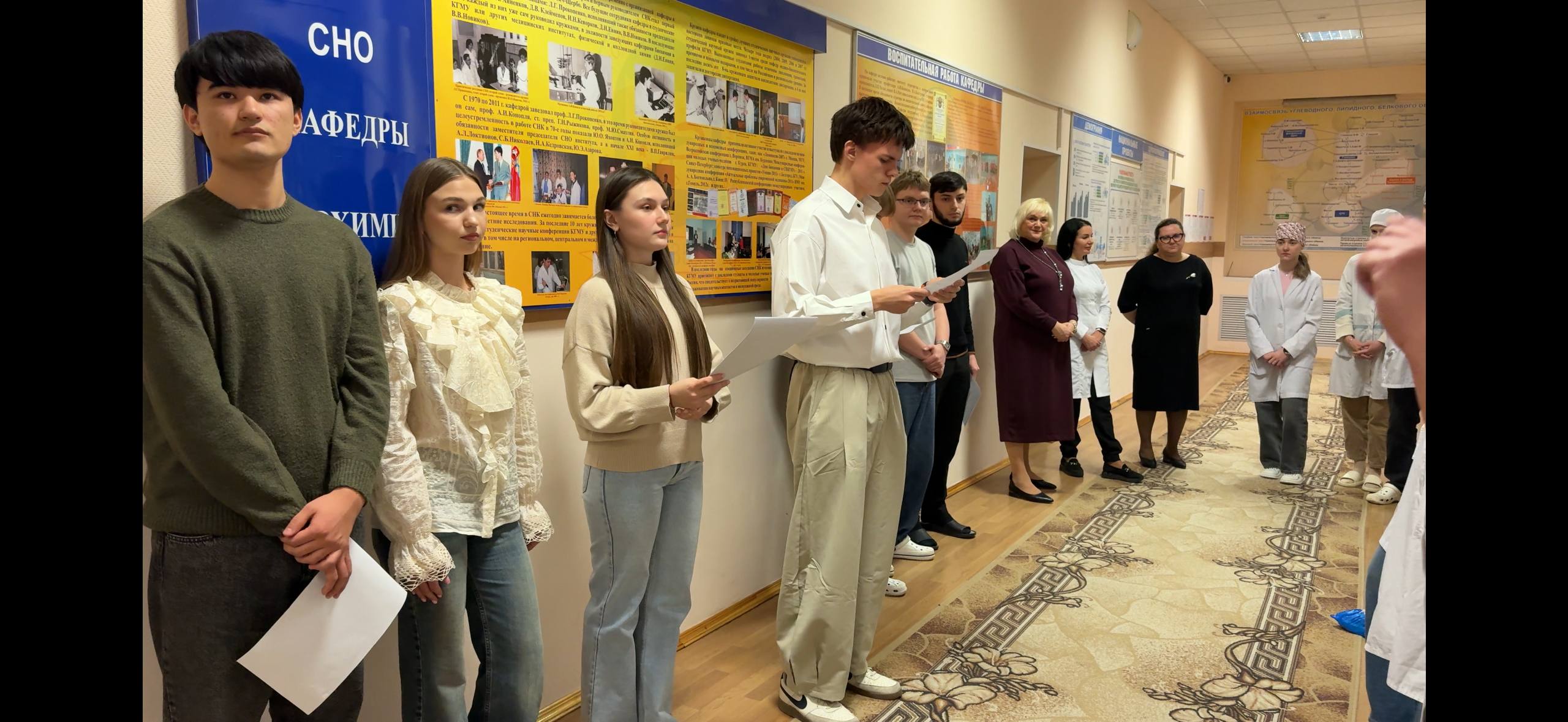 5 марта 2026 г. на кафедре биологической химии прошло праздничное мероприятие, посвященное Международному женскому дню. В торжественной обстановке юноши 24 группы 2 курса лечебного факультета поздравили преподавателей кафедры и всех студенток с наступающим праздником - 8 марта!