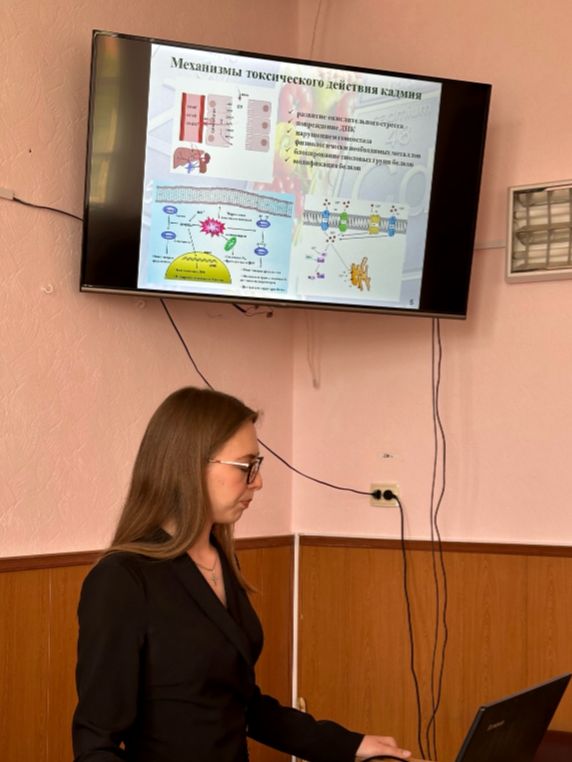 В ходе доклада было обозначено, что тяжелые металлы (Zn, Cd) - приоритетные загрязнители, накапливающиеся в окружающей среде и организме человека, вызывая хроническую интоксикацию. Также цинк и кадмий - антагонисты: Cd вытесняет Zn из белков, нарушая их функции и вызывая окислительный стресс. В рамках исследования был проведен эксперимент: крысам давали воду с ацетатом кадмия и сульфатом цинка (28