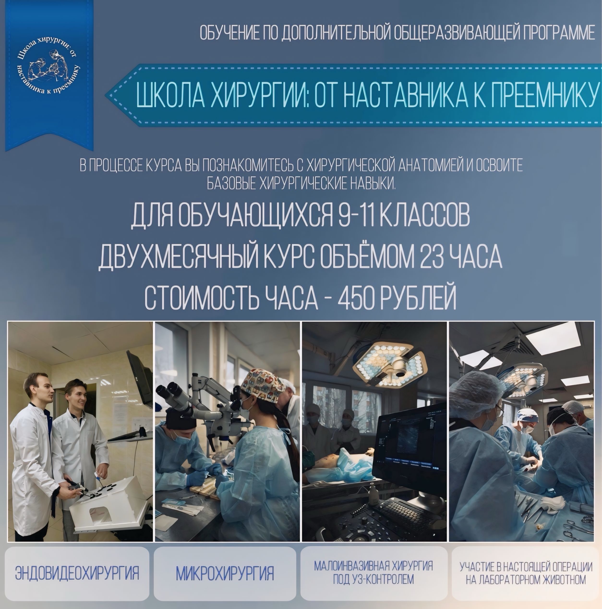 Курский государственный медицинский университет приглашает целеустремленных школьников 9-11 классов, которые чувствуют, что их призвание - помогать людям, стоя у операционного стола, на уникальную программу довузовской подготовки - курс на базе проекта "Школа хирургии: от наставника к преемнику".