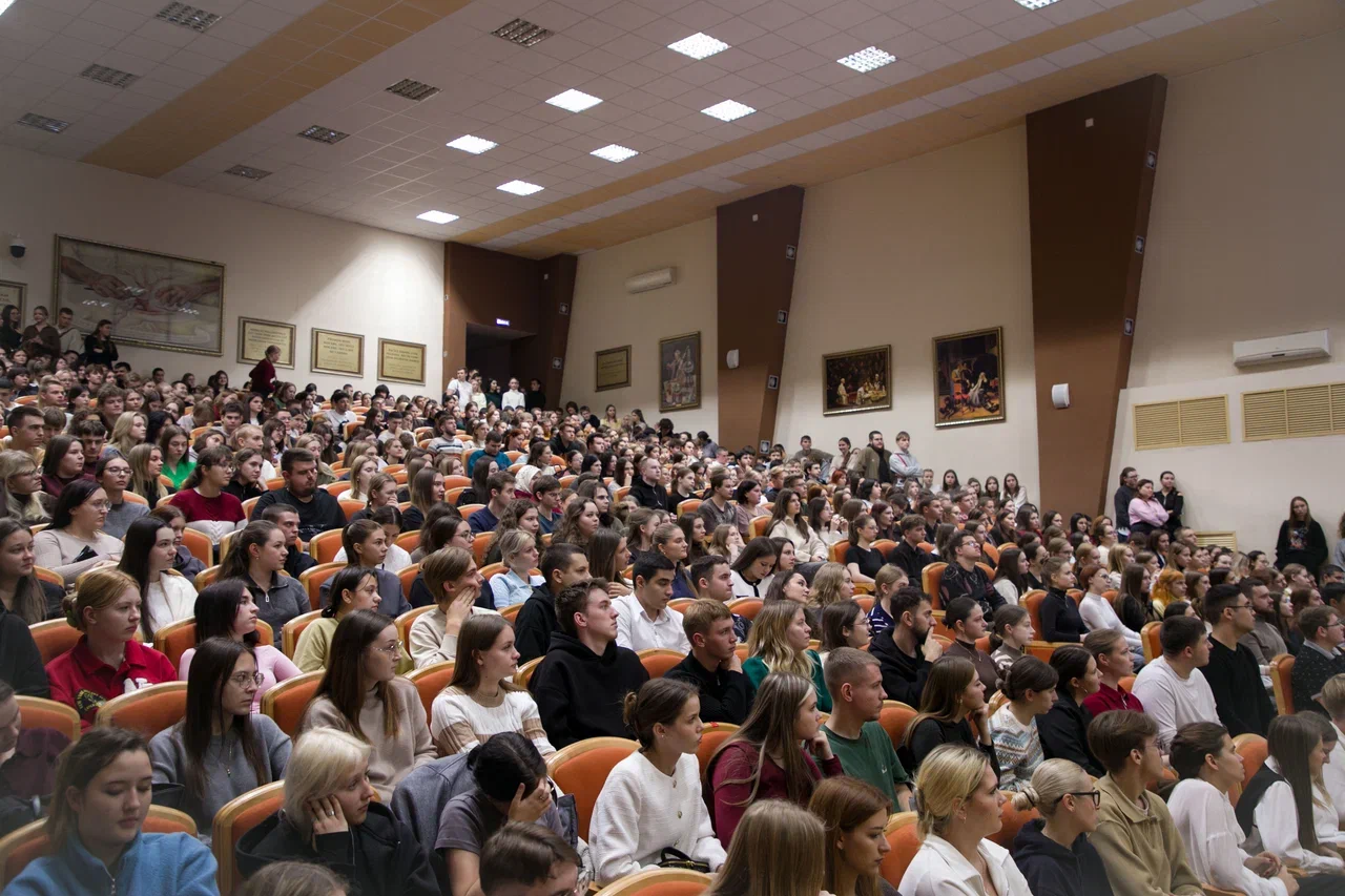 14 октября состоялось производственное собрание со студентами 1-3 курсов 7-ми факультетов деканата факультетов медицинских специальностей, биофармации и клинической фармации. В повестке мероприятия деканом С.А. Додоновой были озвучены вопросы ликвидации академической задолженности по результатам летней экзаменационной сессии, Светлана Александровна в очередной раз акцентировала внимание студентов на сроках, установленных в приказе ректора. Кроме того еще раз обучающимся напомнили о видах телефонного мошенничества и финансовой грамотности, а с первокурсниками обсудили подготовку в ежегодному фестивалю КГМУ «Смотрите, кто пришел». В заключении собрания сотрудники деканата ответили на вопросы обучающихся.