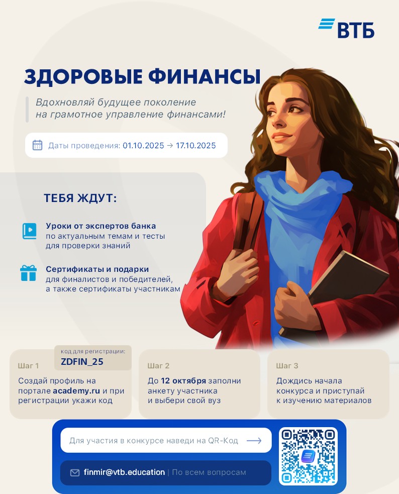Приглашаем студентов принять участие в конкурсе «Здоровые финансы с ВТБ»