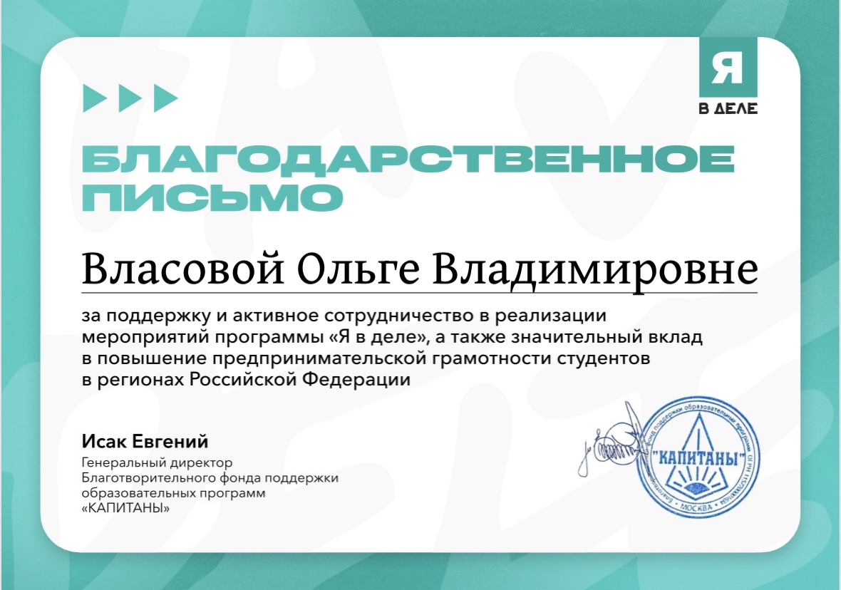 Программа «Я в деле» нацелена не только на создание бизнес-проектов, но и на развитие soft skills — командной работы, коммуникации и управления в условиях неопределенности. Все участники турниров получили сертификаты, а самые активные и перспективные команды были отмечены дипломами победителей и рекомендованы для дальнейшего прохождения полного предпринимательского курса от программы «Я в деле».