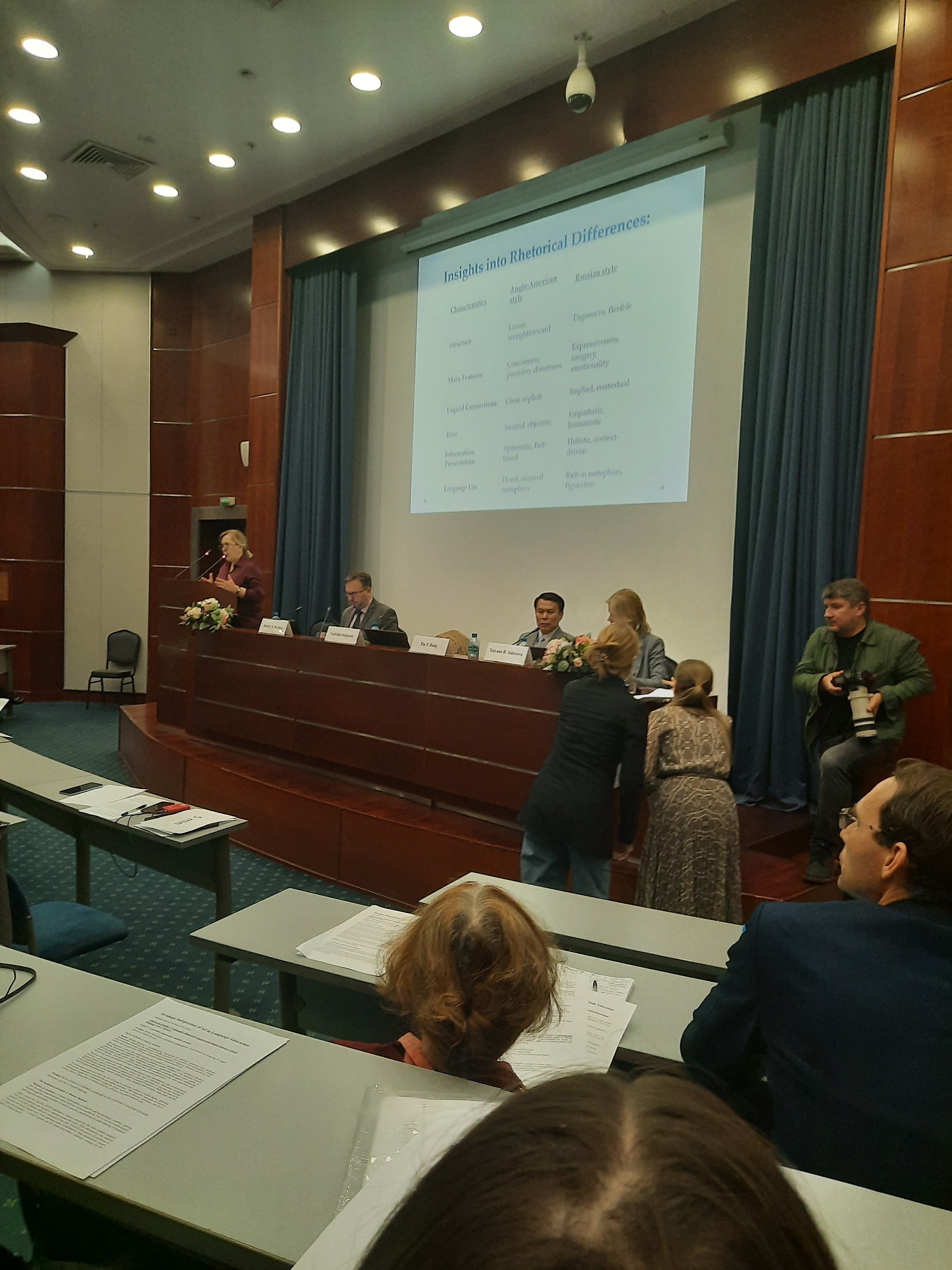Тема доклада: « Внутренне механизмы культурной компетентности в улучшении академической и профессиональной коммуникации специалистов сферы здравоохранения ». Доклад вызвал оживленный интерес со стороны российских и зарубежных специалистов, потому что предложено органично включить культурно-ориентированный подход и материалы на английском языке для повышения эффективности обучения академической и профессиональной коммуникации специалистов: преподавателей и студентов медицинского университета. За счет обогащения обучающихся знаниями и глоссариями культуро-ориентированного содержания, обучение их академической поликультурной среды, обучения культуре этикетного общения на английском языке в поликультурной академической среде и в учреждениях системы здравоохранения, снимаются трудности вступления российских студентов и преподавателей в межкультурные взаимодействия на английском языке с представителями разных культур и достигается правильное понимание.