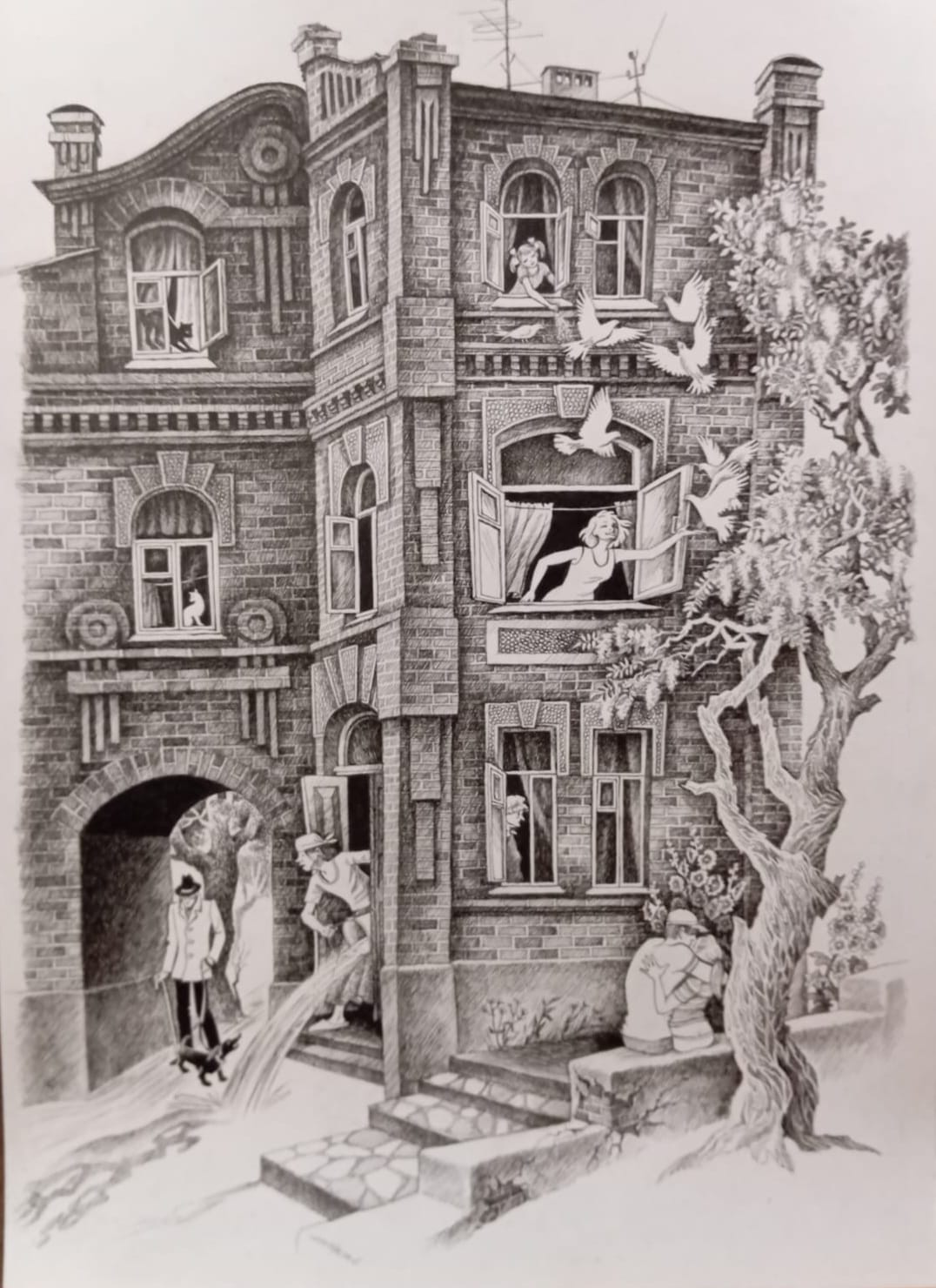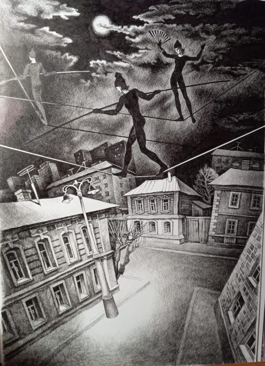 Прекрасные работы в технике графики, выполненные известным художником Еленой Ю. Жигулевой - членом союза Художников России черной гелевой ручкой, заполнили доминирующее пространство выставочного зала и погрузили зрителей в мир реального и ирреального, наполненного символикой. Картины художника стимулируют к глубокому размышлению о непреходящей вечности жизни и бытия Человека в существующем мире.