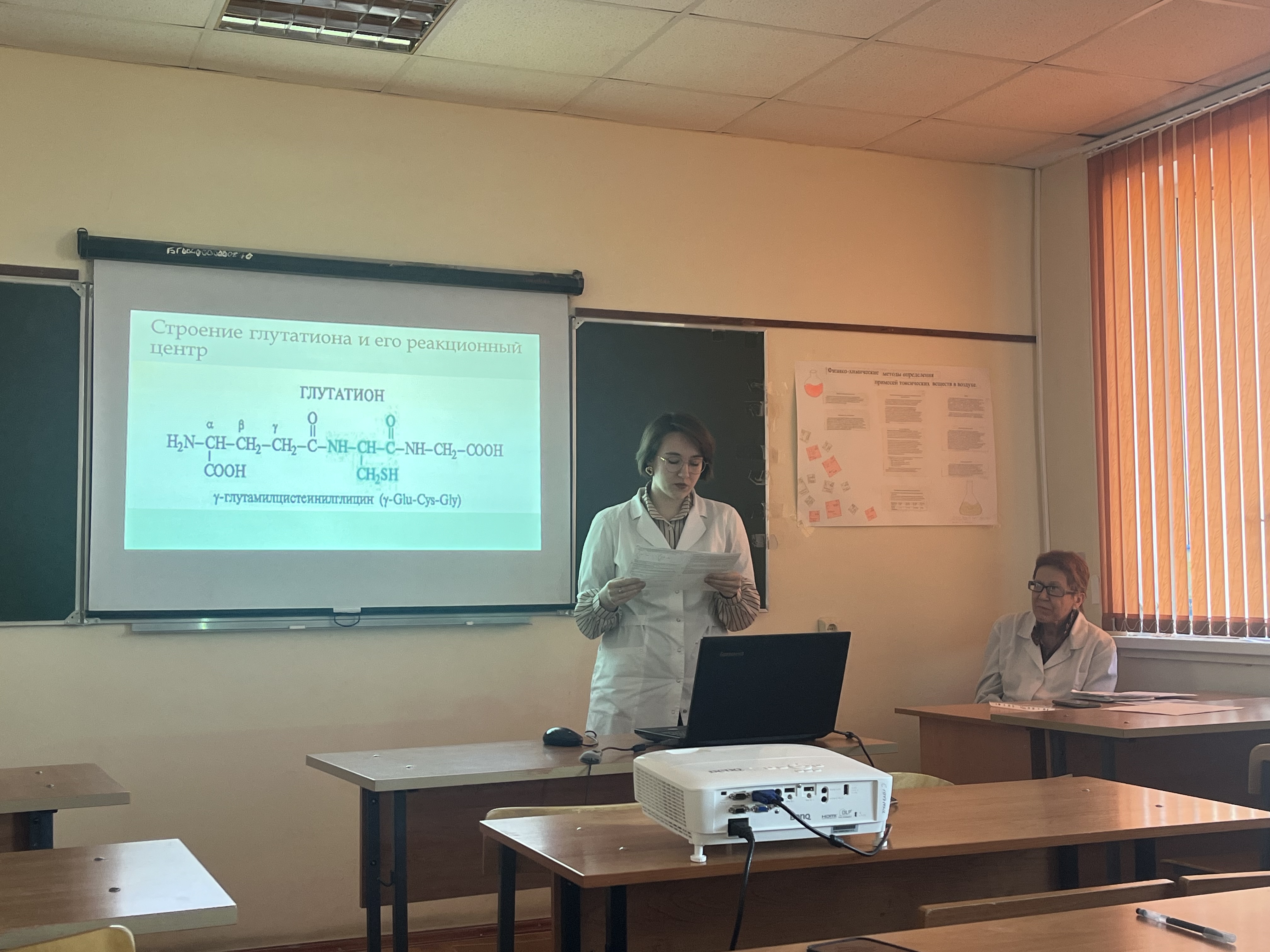 On April 6, 2026, the Department of General and Bioorganic Chemistry hosted a scheduled meeting of the Council of People's Commissars on the topic "The glucuronidation reaction as one of the pathways of xenobiotic metabolism" under the leadership of Ph.D., Associate Professor Irina Zubkova. The ways in which foreign compounds enter the human body, the chemical bases of the interaction of xenobiotics (including medicinal substances) with glucuronic acid are discussed. The pathway of metabolism of certain groups of compounds due to their conjugation with a-amino acids is also considered.