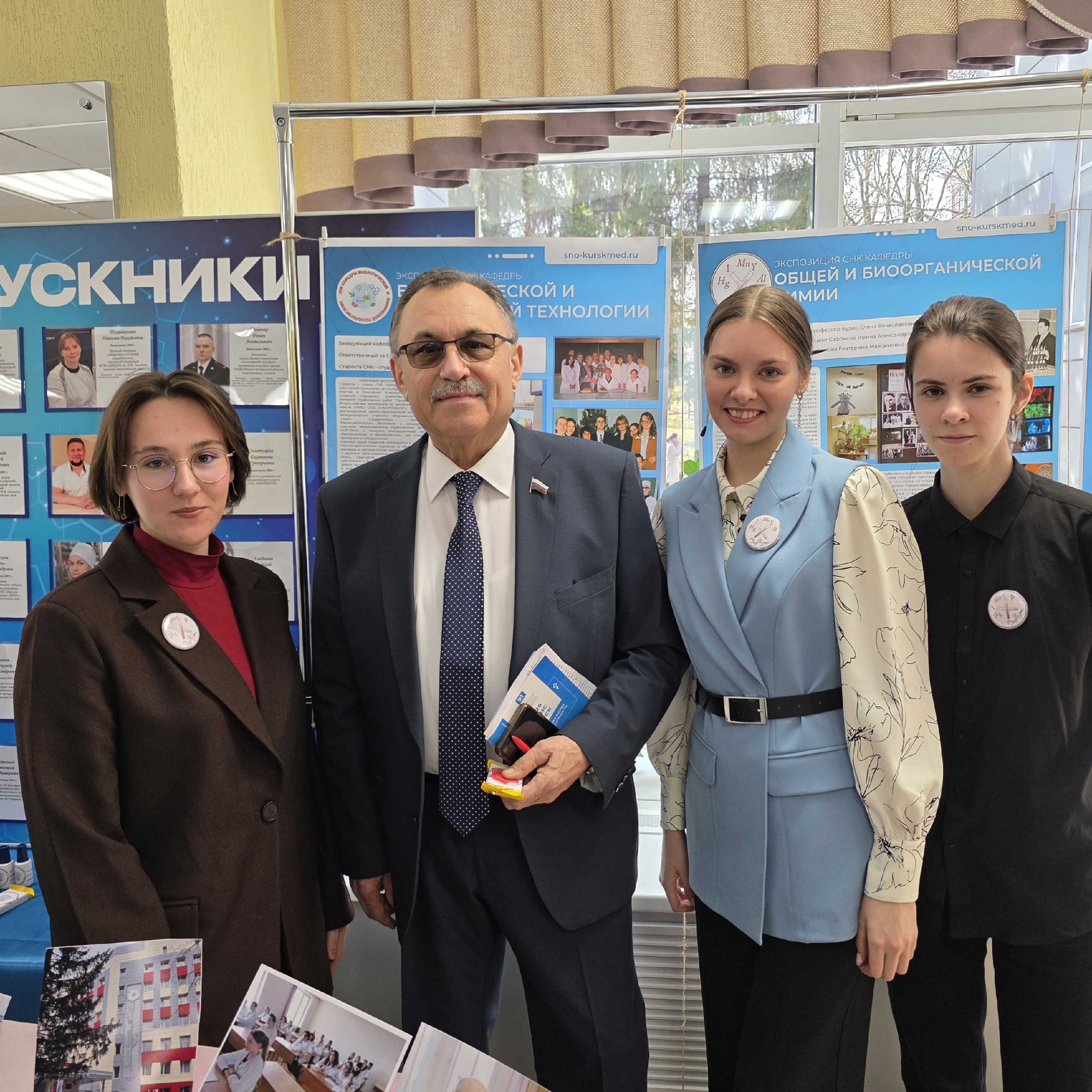 В среду, 22 апреля 2026 года, в КГМУ прошло торжественное открытие 91-й Международной научной конференции студентов и молодых ученых "Молодежная наука и современность". Утром в холле фармацевтического корпуса была организована выставка достижений студенческих научных кружков ведущих кафедр КГМУ.