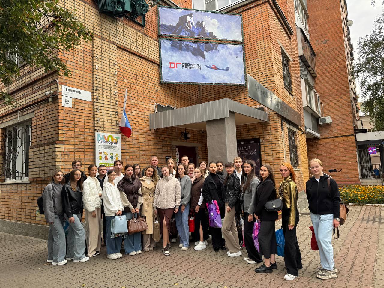 24 сентября 2025 года студенты 3 курса 3 и 4 групп педиатрического факультета под руководством профессора кафедры общей гигиены, доктора медицинских наук Александра Михайловича Черных посетили выставку «Невидимые нити» в Курской государственной картинной галерее имени А.А. Дейнеки.