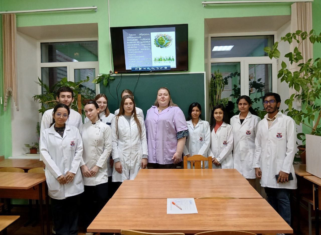 На заседании был представлен доклад, подготовленный студенткой 3 курса лечебного факультета - Зайцевой Елизаветой Евгеньевной на тему: "Урбанизация и гигиена мегаполиса: как городская среда влияет на здоровье. Концепция города, дружелюбного к здоровью"