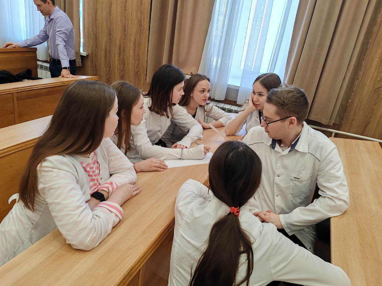 М.В.Быков. Большой практический опыт М.В. Быкова помогли участникам разобрать сложные моменты законодательства о защите прав потребителей.Студенты 6 курса на конкретных примерах показали, как должна строиться работа по консультированию граждан, какие документы необходимо запросить и на какие нормативные документы ссылаться. Первокурсники, в свою очередь, расширили представления о будущей деятельности, получили ценный опыт коммуникации с надзорными органами и узнали, как отстаивать свои права законными методами. Мероприятие прошло в атмосфере живого диалога, стало отличной демонстрацией преемственности знаний на кафедре. Подобные интерактивные занятия способствуют формированию профессиональных компетенций будущих врачей и позволяют на практике отработать взаимодействие надзорного органа и населения.