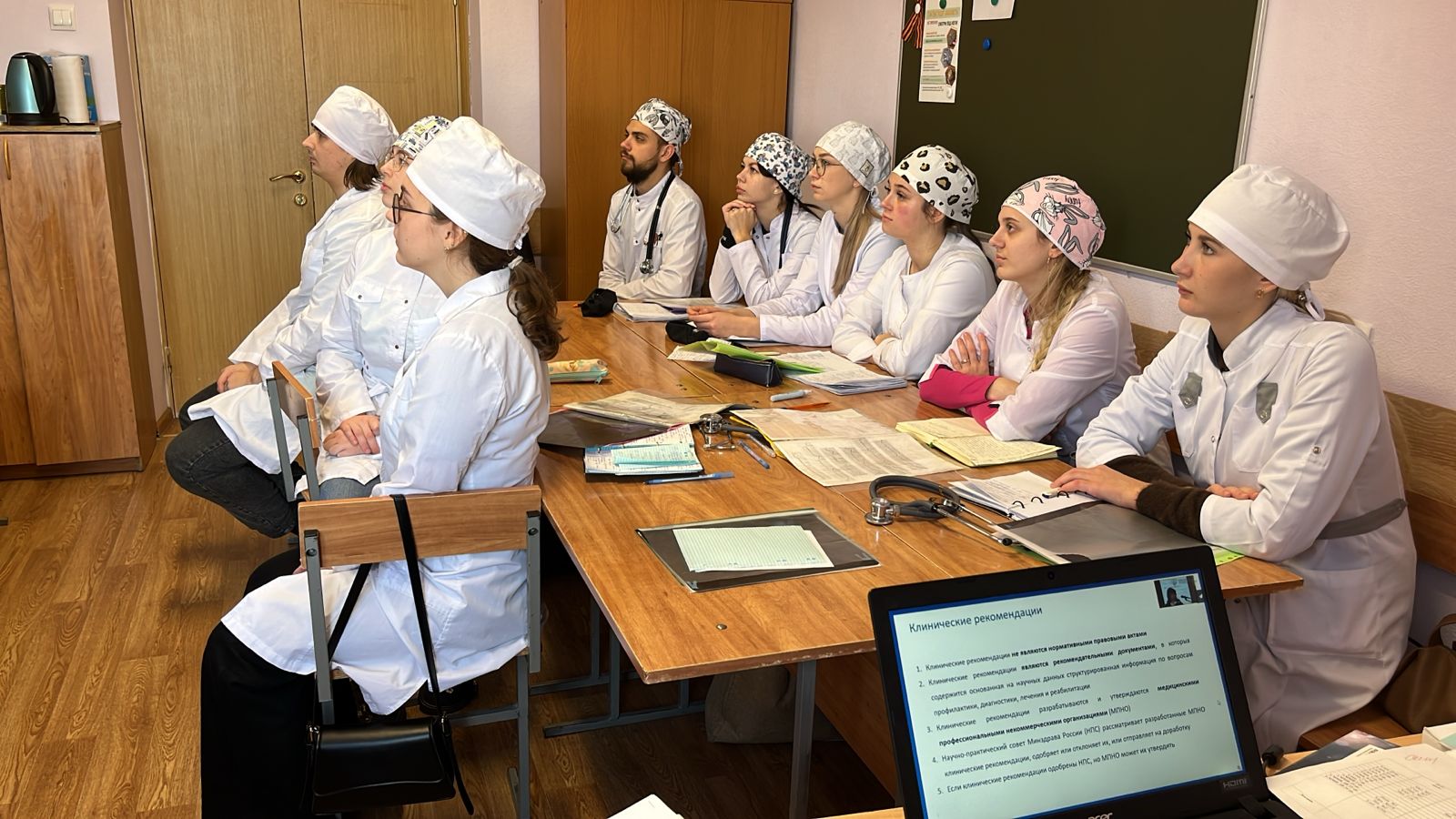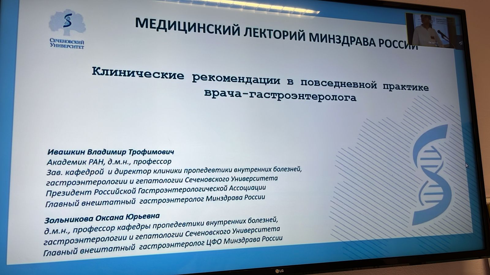 7 ноября 2025 г. студенты 5 курса лечебного факультета и преподаватели кафедры внутренних болезней №1 прослушали цикл лекций, посвященных клиническим рекомендациям в гастроэнтерологии, в рамках медицинского лектория Минздрава России