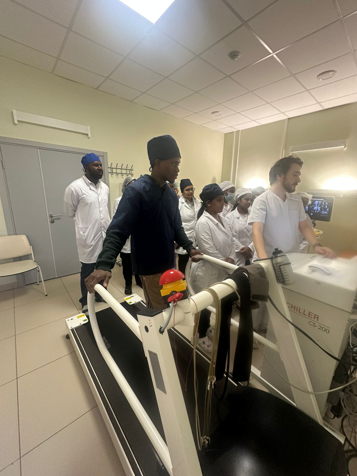 В рамках дополнительной профессиональной программы повышения квалификации «Ротируемая медицинская стажировка" интернов ММИ в КГМУ (28 ноября - 9 декабря 2025 гг) на базе Курского онкологического научно-клинического центра им. Г.Е. Островерхова прошел мастер-класс по регистрации ЭКГ и проведению стресс-эхокардиографии и тредмил-теста.