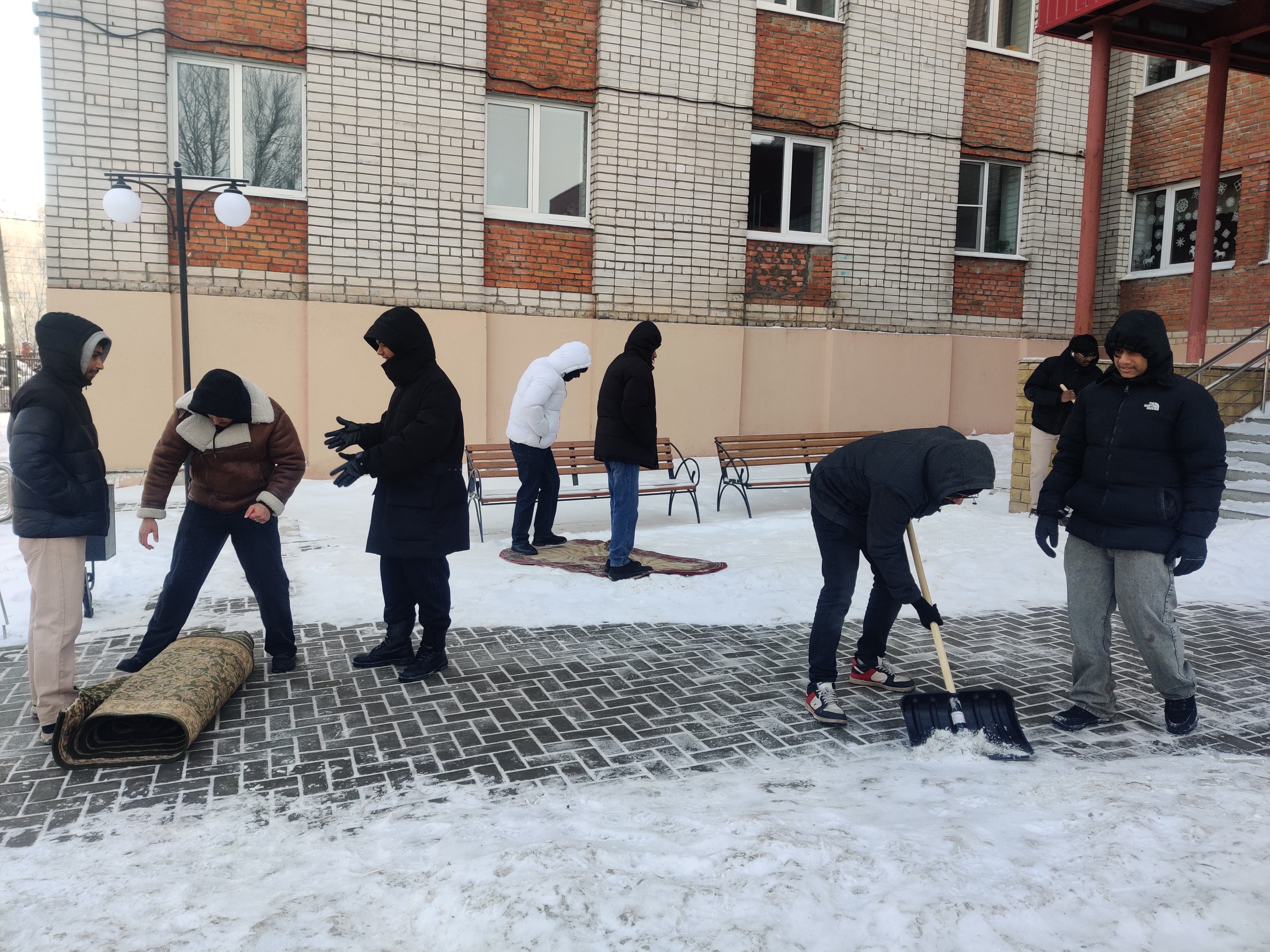 Участники навели порядок на кухнях, тщательно вымыли столы, плиты и весь кухонный инвентарь, которые ежедневно используют сами студенты. Были приведены в порядок лестничные пролёты, коридоры и места общего пользования в каждой секции. Удивительным оказалось для иностранцев из жарких стран народный способ выбивания ковровых дорожек на снегу. Заблестели к новому семестру кабинеты и коридоры ММИ КГМУ. Удивительным оказалось для иностранцев из жарких стран народный способ выбивания ковровых дорожек на снегу.