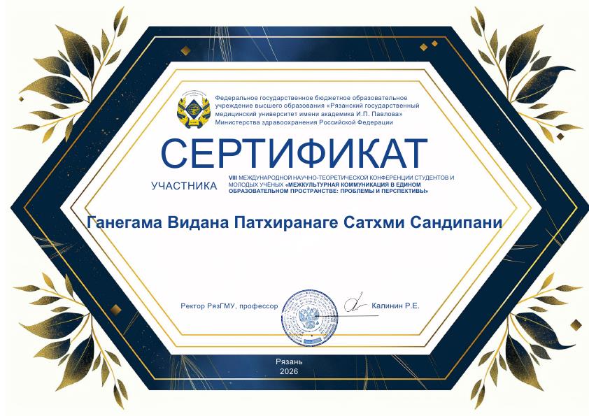 On March 20, 2026, 1st year students of MMI took part in the VIII International Scientific and Practical Conference of Students and Young Scientists "International Communication in the Common Educational Space: Problems and Prospects", held by the Ryazan State Medical University named after Academician I.P. Pavlov of the Ministry of Health of the Russian Federation. Student Hettiarachchi Thewni Diliniba presented the report "Problems of Social & Cultural Adaptation of Foreign Medical Students in the Russian Federation". Students Ganegama Vidana Pathiranage Sathmi Sandeepani and Rupasinghe Siyath Manthila presented a report on "Multicultural Education and Problems of Sociocultural Adaptation of International Students".
