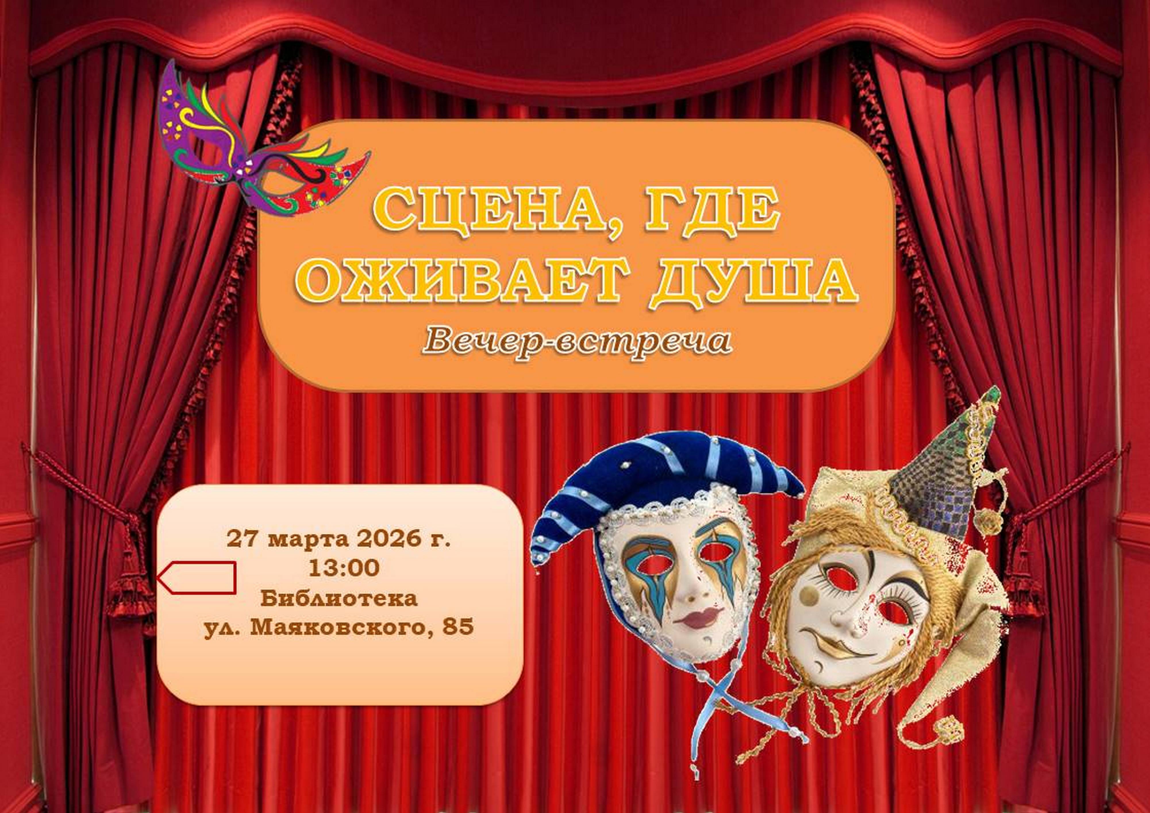 27 МАРТА ПРИГЛАШАЕМ НА ВЕЧЕР-ВСТРЕЧУ «СЦЕНА, ГДЕ ОЖИВАЕТ ДУША»