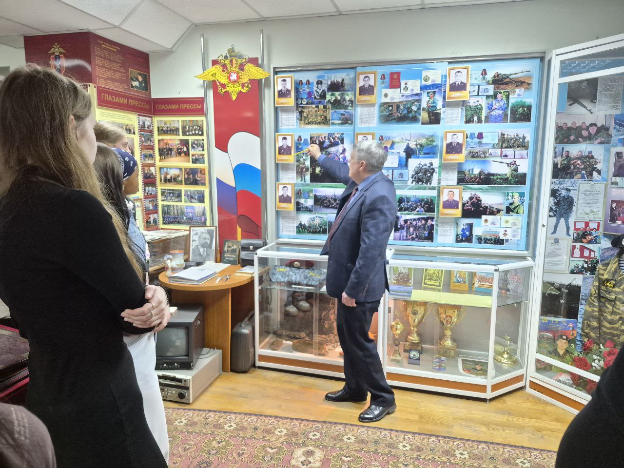 В ходе экскурсии студентам были показаны уникальные экспонаты, фотографии и документы, отражающие историю становления органов внутренних дел и специфику деятельности различных подразделений: это и форма, и оружие, и награды; это аппаратура, личные вещи и многое другое. Залы музея включают историю с XIX века — организация и первые шаги полиции на Курской земле, годы Первой мировой войны, Октябрьской революции, Великой Отечественной войны и новейшей истории – горячие точки начала 2000-х и даже СВО. Особенное впечатление оставил паспорт одного из жителей Суджи, в котором он оставил предсмертную записку.