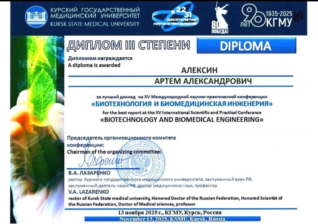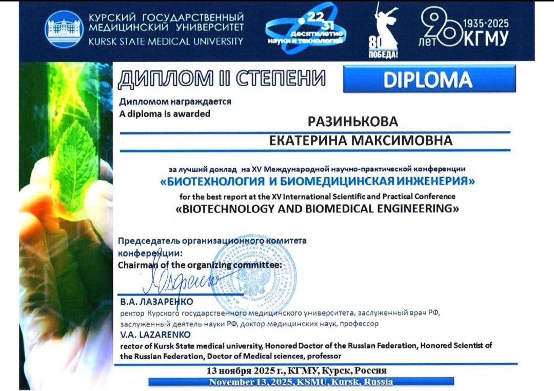 13 ноября 2025 г. на кафедре биологической и химической технологии состоялась XV Международная научно-практическая конференция «Биотехнология и биомедицинская инженерия», посвященная 90-летию Курского государственного медицинского университета и памяти профессора Л.П. Лазуриной. Участники конференции обменялись научным и практическим опытом в области биотехнологии, химической технологии, биомедицинских информационных технологий.