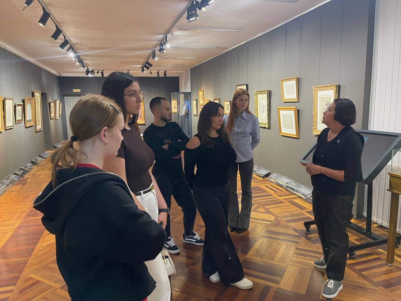 24 сентября 2025 года студенты 2 курса 13 группы стоматологического факультета от кафедры микробиологии, вирусологии, иммунологии посетили выставку «Невидимые нити», которая проходила в картинной галерее им. А.А. Дейнеки. На ней были представлены работы таких мэтров русского искусства, как Репин, Кившенко, Лебедев, а также многих других талантливых художников. Она позволила нам ненадолго отвлечься от учебных будней и окунуться в мир прекрасного. Произведения, представленные на выставке, поражали своим разнообразием стилей и техник. Возможность познакомиться с таким широким спектром художественных направлений была невероятно ценна. Особенно запомнилась нам работа Ильи Ефимовича Репина «Запорожцы пишут письмо турецкому султану. 1878». Этот эскиз отражает композиционные поиски Репина в работе над картиной. В 1676 году султан Махмуд IV повелел запорожцам сдаться, грозя полным уничтожением, но они ответили насмешливым письмом. О письме художник узнал от историка Д.И. Яворницкого.