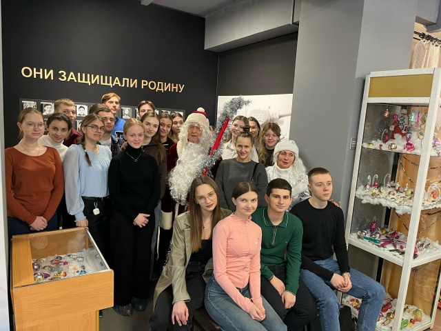 А в конце этой глубокой и важной встречи нас ждал удивительный и трогательный сюрприз! К нам пожаловали самые настоящие Дед Мороз и Снегурочка! После строгих и героических страниц истории их появление стало символом мира, радости и светлого будущего, которое отстояли те юные герои. Они поздравили нас с наступающими праздниками, пожелали сил в учебе и, конечно, немного по-новогоднему зарядили волшебством!