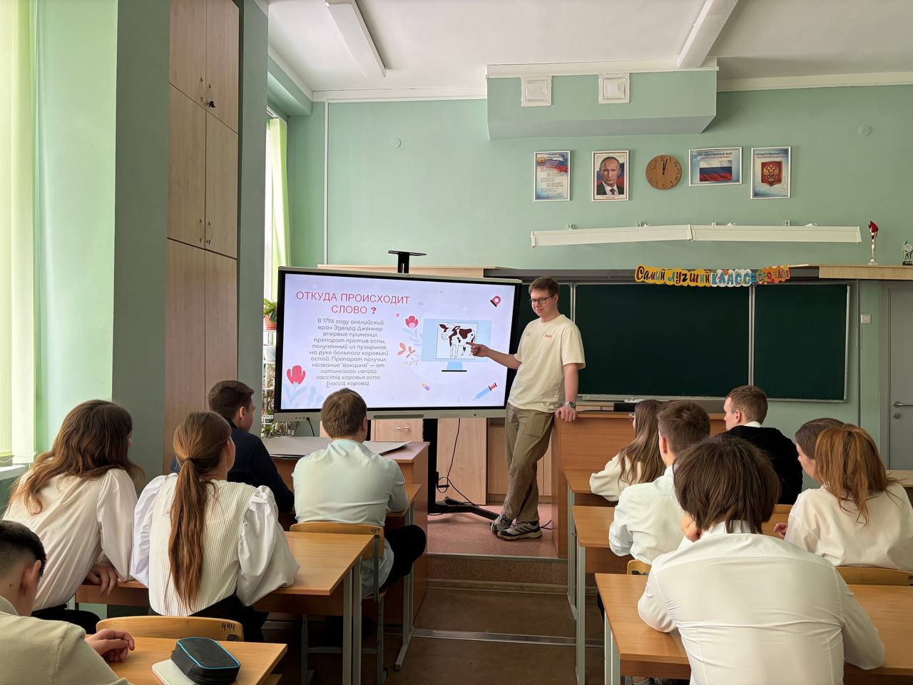 В рамках мероприятия студенты поделились со школьниками информацией о том, что же такое иммунитет, каким он бывает, рассказали как клетки иммунной системы противостоят вирусам и бактериям. Волонтеры отряда также не забыли отметить важность поддержания иммунной системы с самого детства.