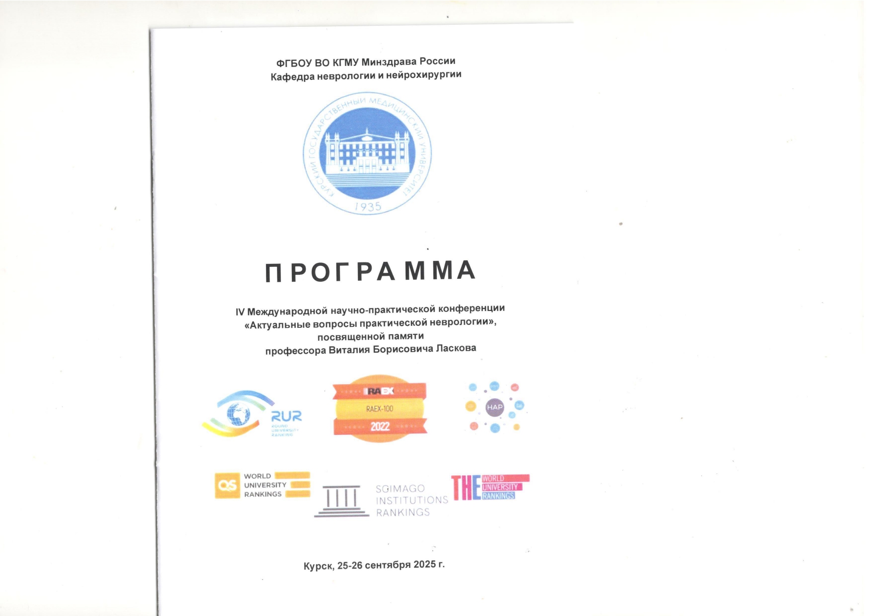 25-26 сентября 2025г. в стенах Курского государственного медицинского университета состоялась международная научно-практическая конференция «Актуальные вопросы практической неврологии», посвященная памяти профессора Виталия Борисовича Ласкова аккредитованная в рамках системы НМО. Участие в конференции предоставило возможность познакомиться с последними достижениями в областях неврологии, кардиологии, терапии, ревматологии, транслировать позитивный опыт коллег в аспекте цифровизации, организации и проведения научных исследований, пополнить свой багаж знаний и своё портфолио. Практическая неврология- междисциплинарная область, поэтому в работе конференции приняли участие врачи-терапевты, кардиологи, специалисты по восстановительной медицине, психиатры, ревматологи, фармакологи. Последние годы ознаменовались значительными достижениями в изучении механизмов и клиники заболеваний и повреждений нервной системы. В клиническую практику внедряются новые препараты и технологии медикаментозного и немедикаментозного лечения заболеваний нервной системы, устройства для механического восстановления кровотока при инсульте, роботизированные средства реабилитации больных.