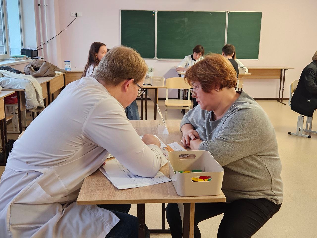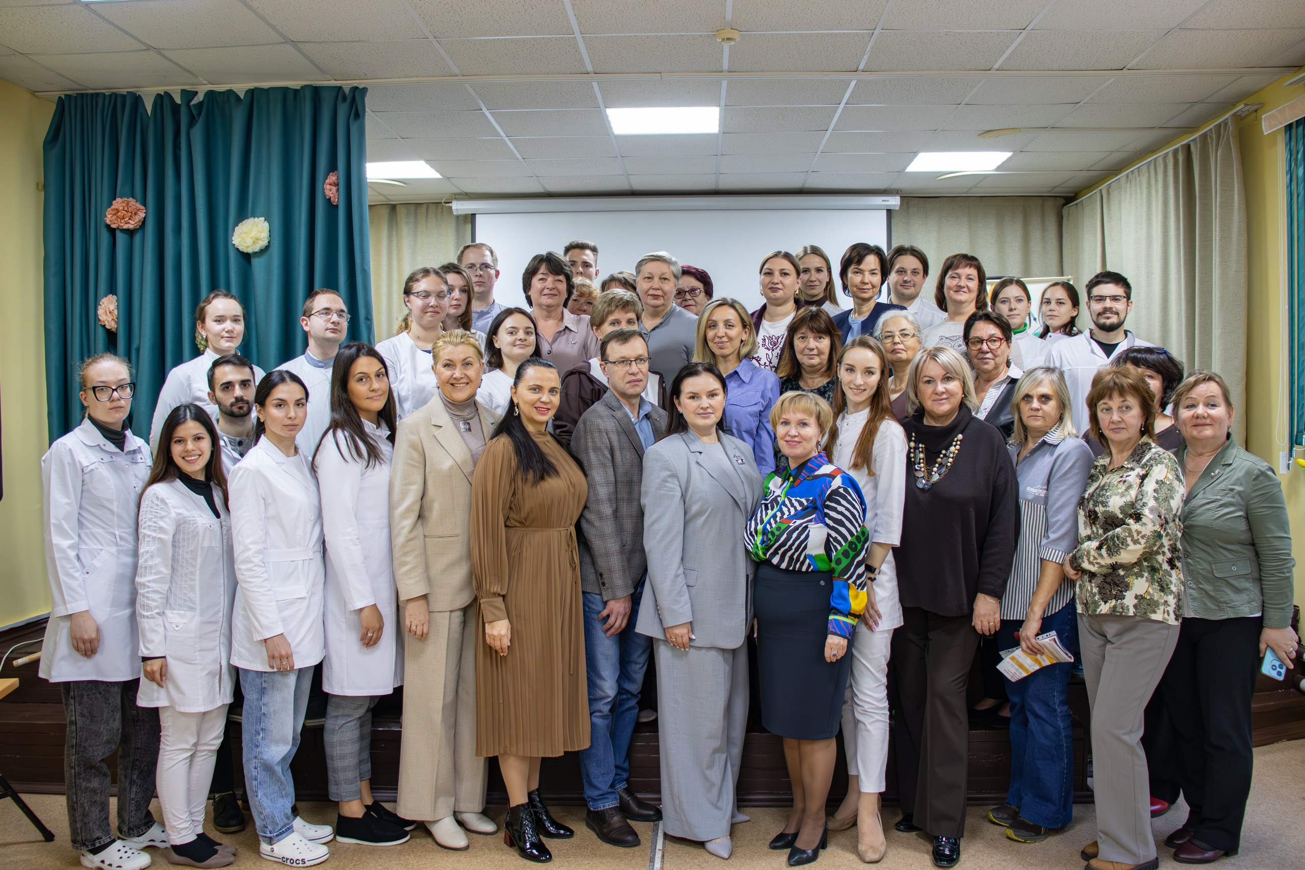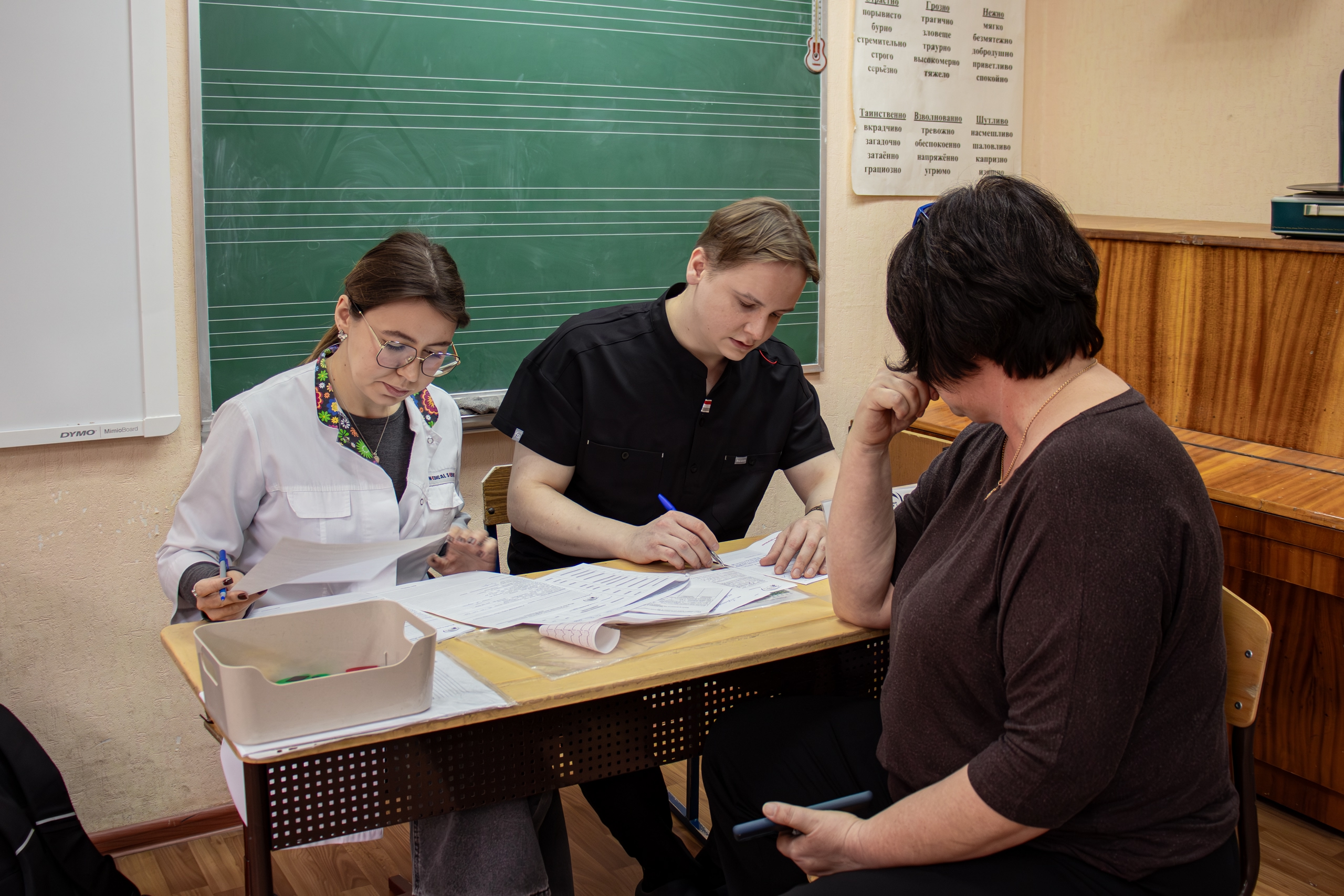 19 марта 2025 г. в СОШ № 49 г. Курска состоялось очередное мероприятие в рамках проекта "Сердце учителя". В мероприятии принимали участие волонтеры - ординаторы клинических кафедр КГМУ, в том числе волонтерский отряд "Нейрон", сформированный на базе кафедры неврологии и нейрохирургии. И, конечно же, ключевыми участниками были педагоги школы № 49, поддержание и сохранение здоровья которых и являлось целью встречи. По традиции, учителя были осмотрены докторами, были выявлены индивидуально факторы риска, проведены исследования, такие как измерение АД, ЭКГ, УЗИ БЦА, липидограмма крови, и в результате даны рекомендации каждому осмотренному лицу.