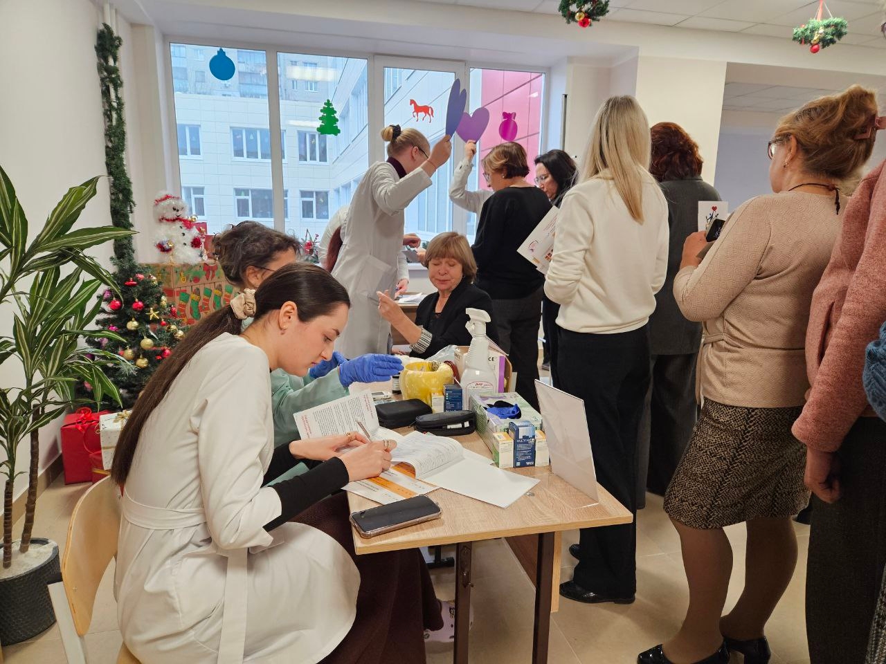 18.12.2025 г. МБОУ Гимназия №25 г. Курска состоялось очередное мероприятие в рамках проекта "Сердце учителя". В мероприятии принимали участие волонтеры - ординаторы клинических кафедр КГМУ, в том числе волонтерский отряд "Нейрон", сформированный на базе кафедры неврологии и нейрохирургии. И, конечно же, ключевыми участниками были педагоги гимназии № 25, поддержание и сохранение здоровья которых и являлось целью встречи. По традиции, учителя были осмотрены докторами, были выявлены индивидуально факторы риска, проведены исследования, такие как измерение АД, ЭКГ, УЗИ БЦА, липидограмма крови, и в результате даны рекомендации каждому осмотренному лицу.Помимо этого, во время профилактического осмотра медики дали рекомендации по здоровому образу жизни, а также информацию о том, как заподозрить инфаркт или инсульт. Возможно, в критической ситуации эти знания спасут жизнь кого-то из родных и близких.Каждый учитель получил на руки "Карту здоровья" с индивидуальными медицинскими рекомендациями и результатами обследования.