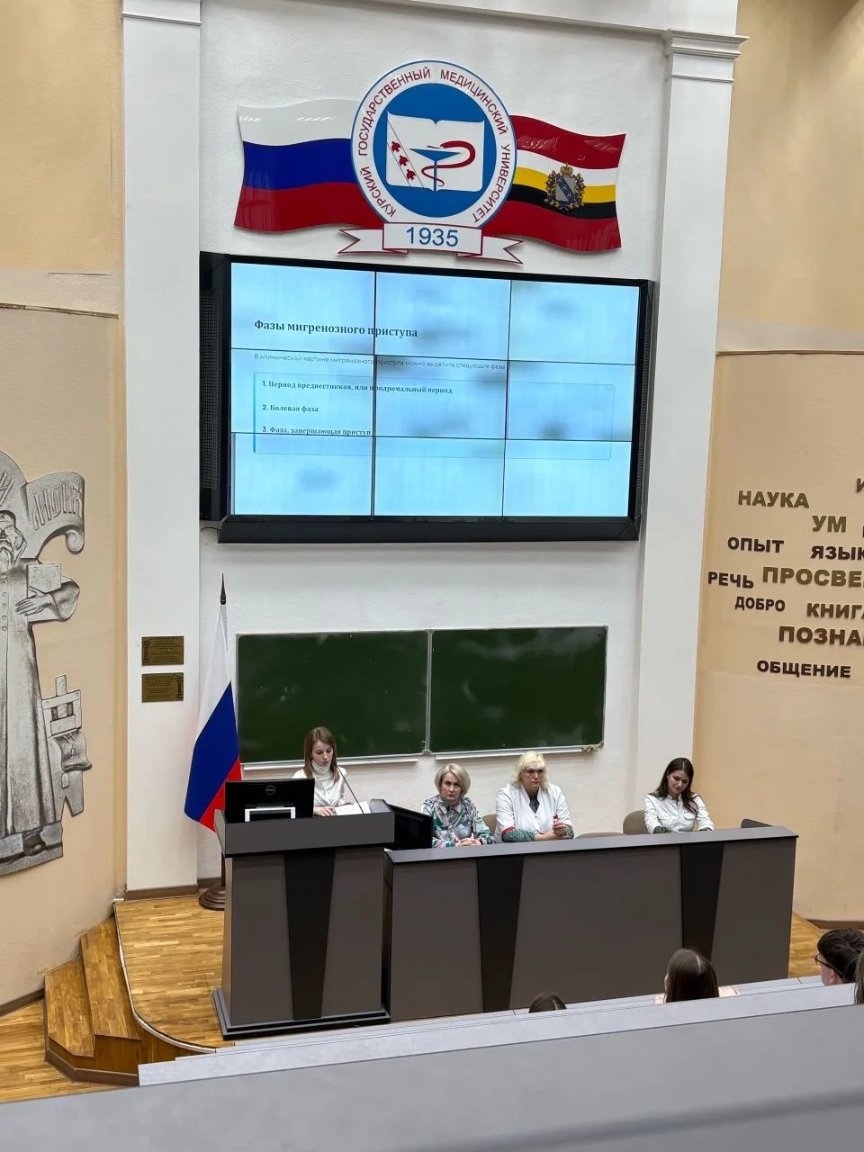 19.03.2026 во второй лекционной аудитории КГМУ состоялось совместное межкафедральное заседание с участием СНК кафедры неврологии и нейрохирургии и СНК кафедры биологической химии. Заседание было посвящено теме дофаминовой дизрегуляции. Были рассмотрены ключевые вопросы обмена дофамина, обсужден патогенез заболеваний, связанных с дофаминовой дизрегуляцией, таких как мигрень, болезнь Паркинсона, шизофрения, некоторые виды зависимостей. Благодаря междисциплинарному взаимодействию, рассмотрели клинику мигрени и болезни Паркинсона, подходы к диагностике этих патологий, обсудили стратегии терапии с учетом патогенеза. Информация представленная докладчиками была актуальной и полезной для будущих специалистов в области здравоохранения.