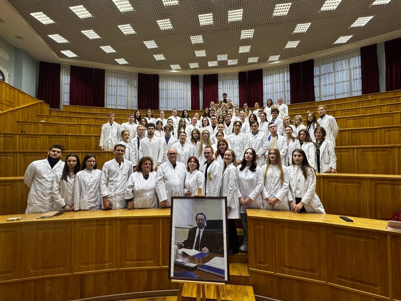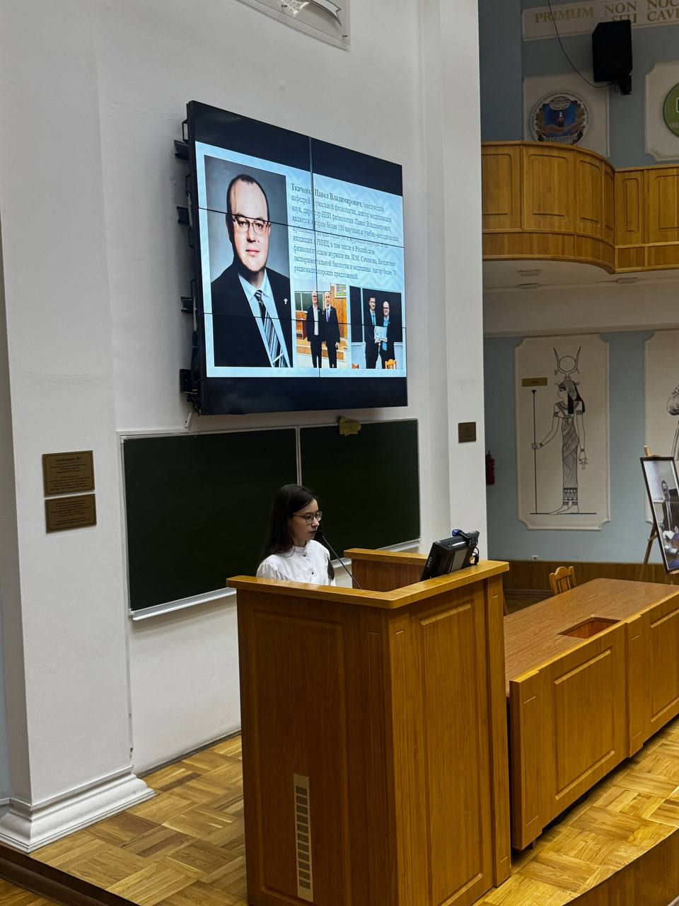 4. «Учитель продолжается в своих учениках» – завершила серию докладов студентка 5 курса лечебного факультета Артюшкова Анастасия. Под таким символичным названием было представлено выступление, ярко проиллюстрировавшее его способность вдохновлять и формировать личности, передавать любовь к науке и медицине.