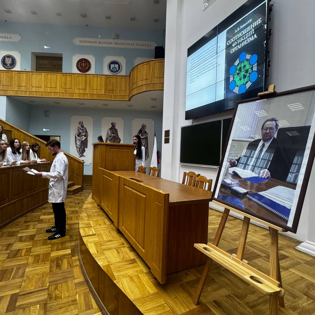 3. «Идеи А.В. Завьялова в работах учеников» – доклад был представлен студентами 4 курса лечебного факультета Ромашковой Е.В., Ганаевым М.Х. и Гамовой А.А. Их выступление стало живым свидетельством того, как научные концепции профессора А.В.Завьялова продолжают развиваться и обогащаться в современных исследованиях его последователей. Докладчики подробно осветили деятельность заведующего кафедрой нормальной физиологии имени А.В. Завьялова, профессора П.В. Ткаченко и доцента кафедры Н.И. Белоусовой, демонстрируя преемственность поколений и динамичное развитие научной школы.