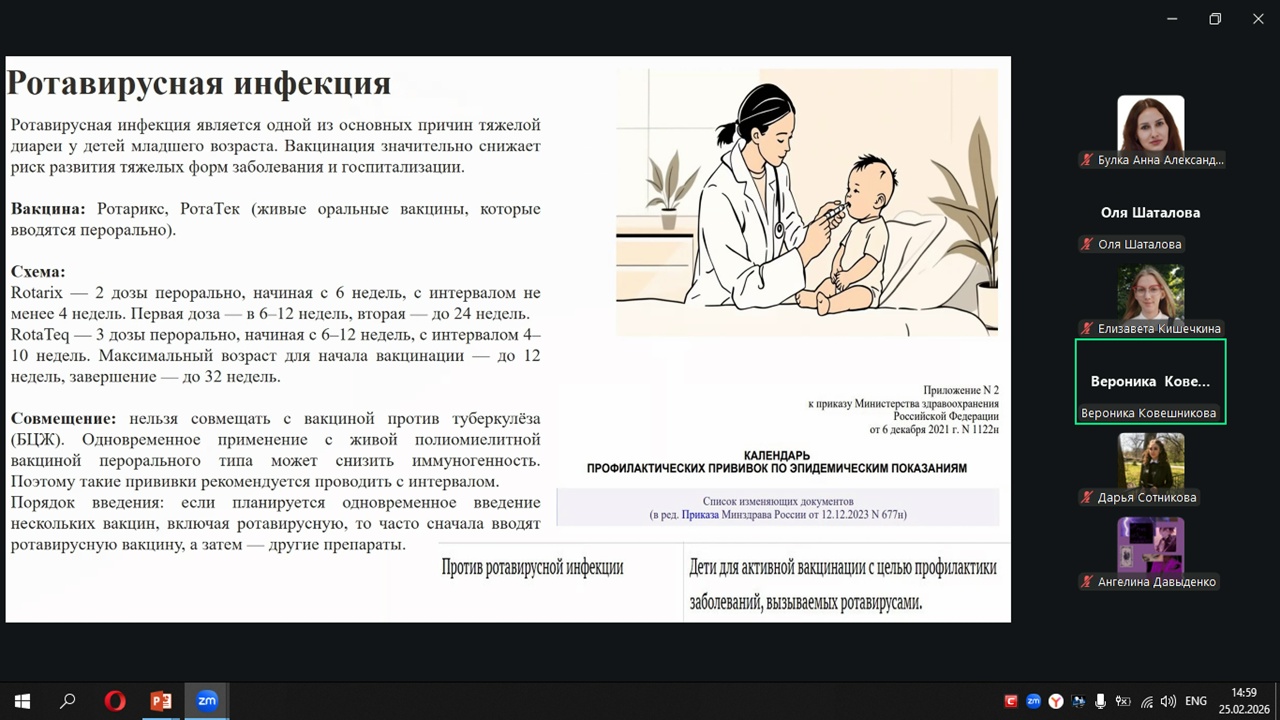 25 февраля 2026 года состоялось очередное заседание СНК педиатрии, посвященное одной из самых актуальных и дискуссионных тем современной педиатрии — «Индивидуальный график вакцинации детей: основные аспекты и трудности».