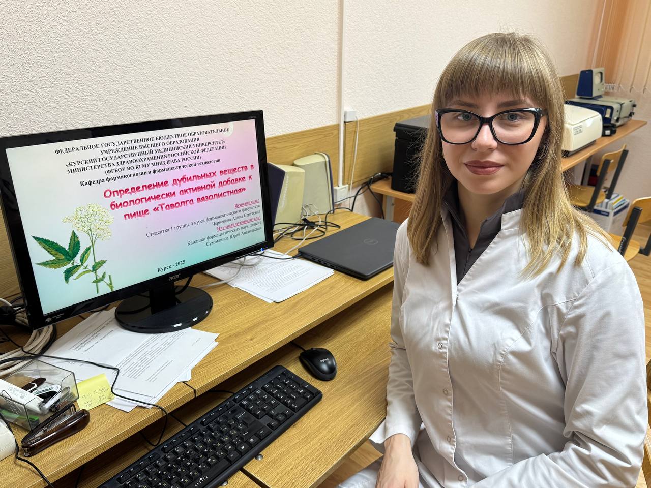 В работе конференции приняли участие члены СНК кафедры фармакогнозии и фармацевтической технологии. От СНК кафедры были представлены два доклада по результатам многолетних исследований. Леонова Диана, староста кружка кафедры (1 группа, 4 курс, фармацевтический факультет) выступила с докладом «Изучение амаранта хвостатого (Amaranthus caudatus L.)»; Чернецова Алина (1 группа, 4 курс, фармацевтический факультет) – с докладом «Определение дубильных веществ в биологически активной добавке к пище «Таволга вязолистная». Научный руководитель – доцент Ю.А. Сухомлинов.