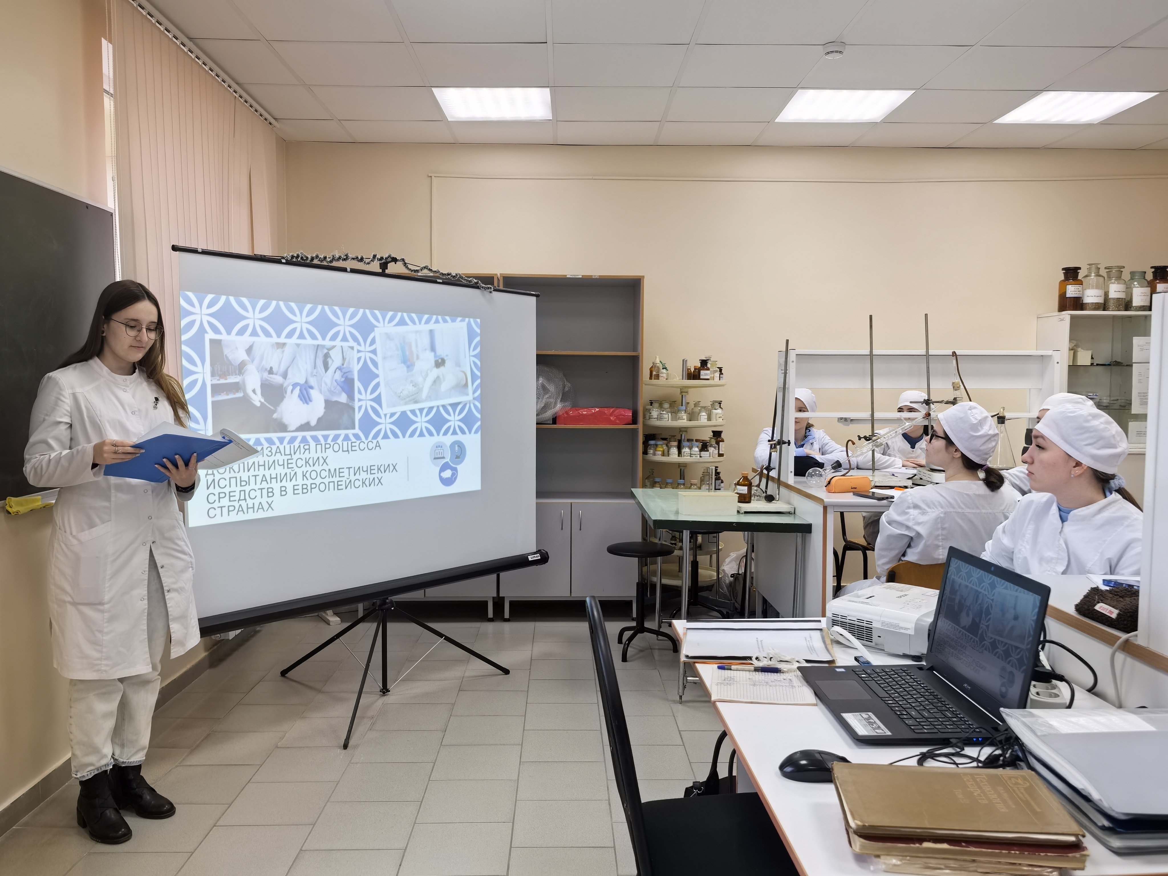 26 ноября 2025 г на кафедре фармакогнозии и фармацевтической технологии состоялось плановое заседание студенческого научного кружка. В своих докладах студенты затронули современные тенденции в развитии промышленной биотехнологии и исследованиях при разработке и выпуске лечебно-косметических препаратов.