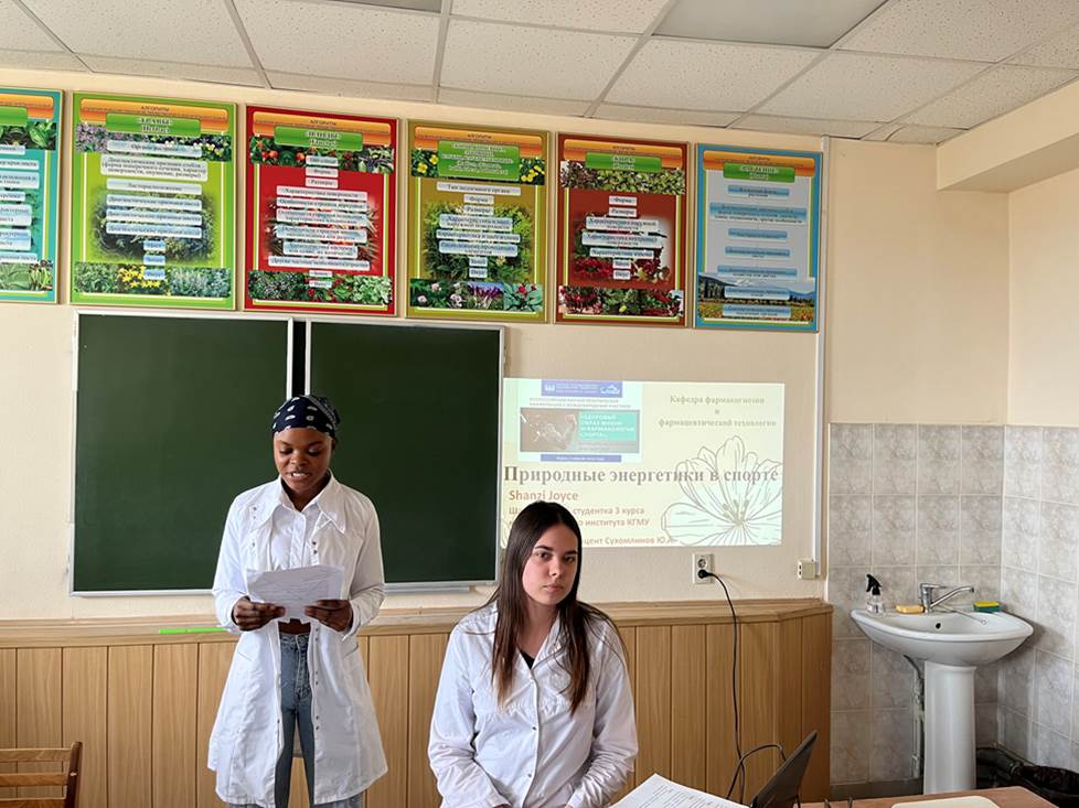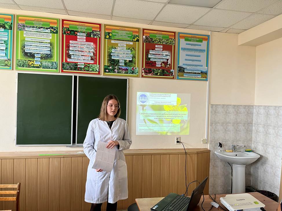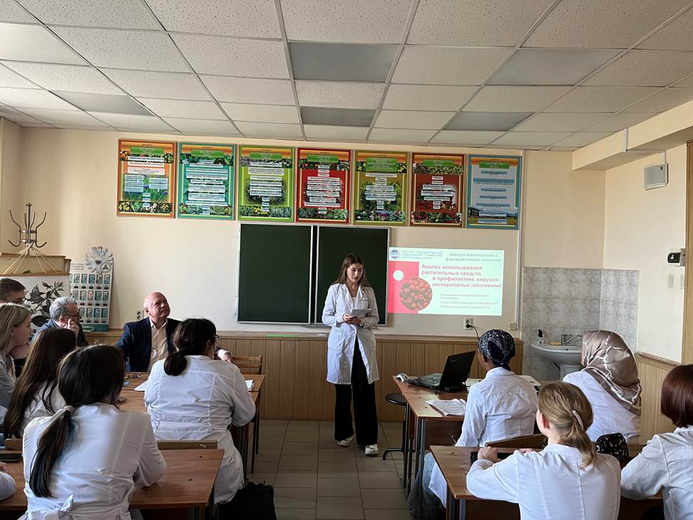 Студенты 2,3,4,5 курсов фармацевтического факультета, а также ММИ КГМУ, активно занимающиеся в студенческом научном кружке кафедры, представили результаты своих исследований. Доклады, выполненные под руководством преподавателей кафедры, были посвящены исследованию химического состава различных лекарственных видов, применению растений в лечении и профилактике различных нозологий, в диетическом питании, а также использованию препаратов из растений в спорте.