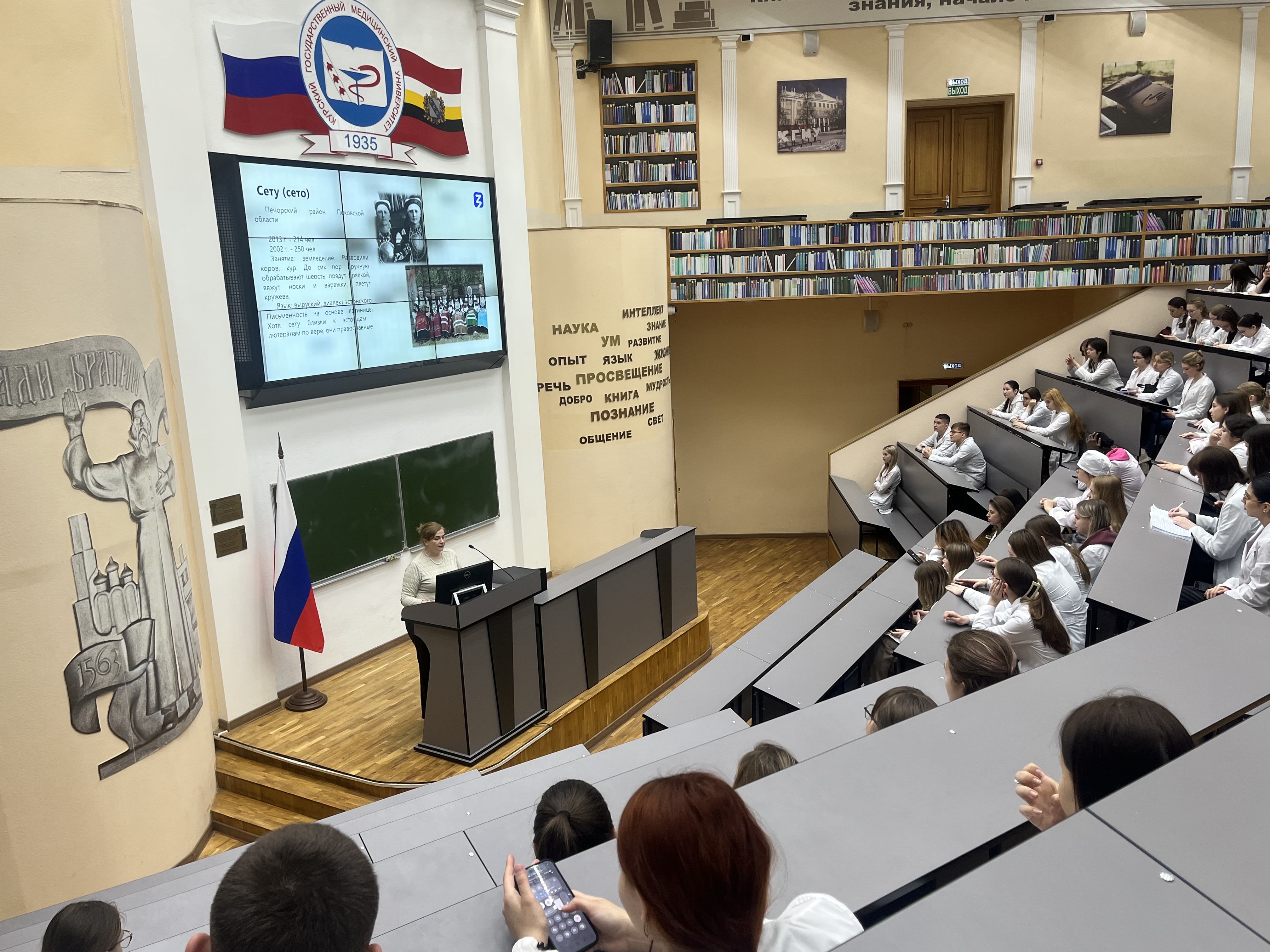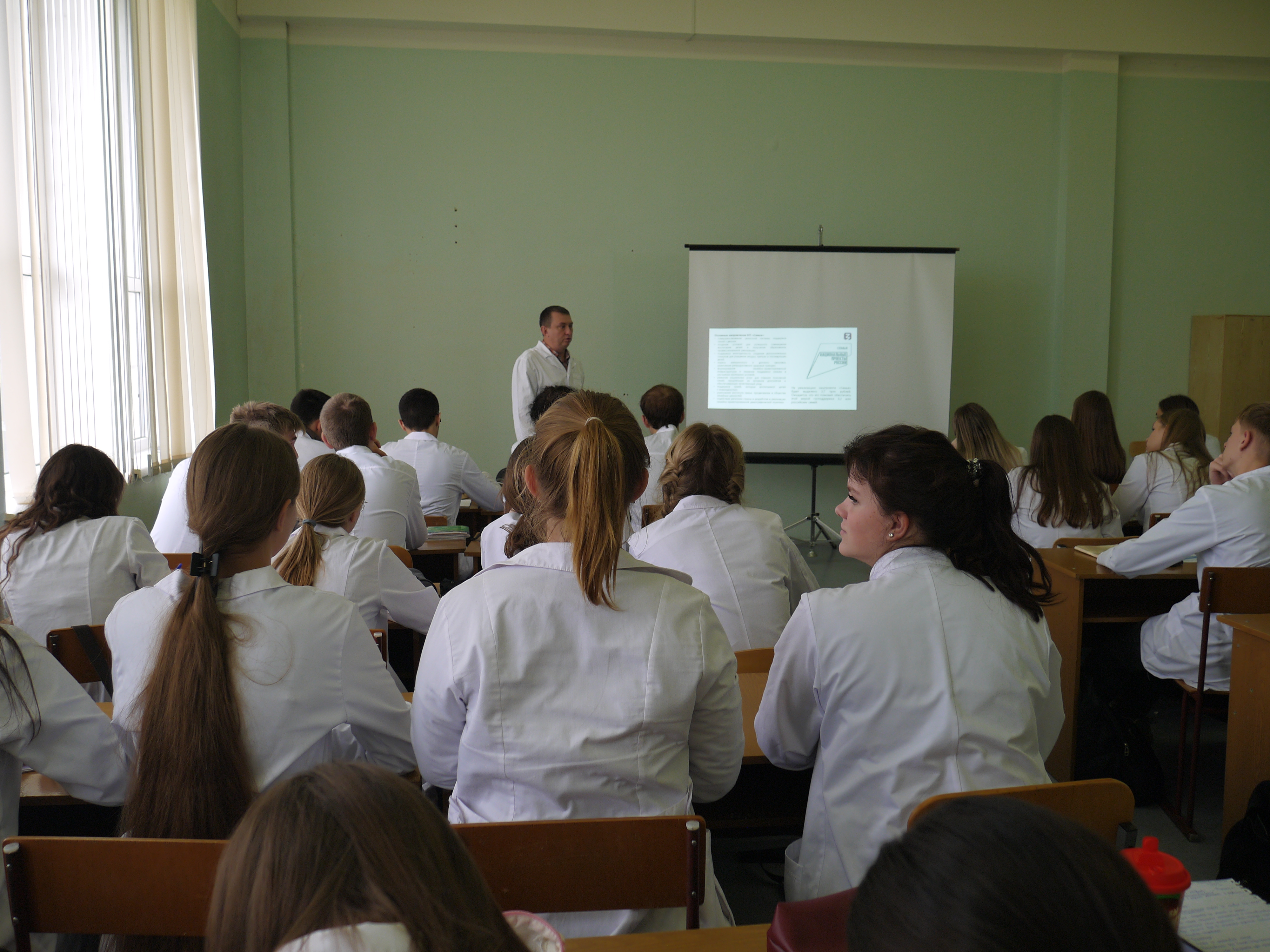 Открытая лекция заведующего кафедрой философии Е.С. Кравцовой перед студентами 1 курса лечебного факультета КГМУ