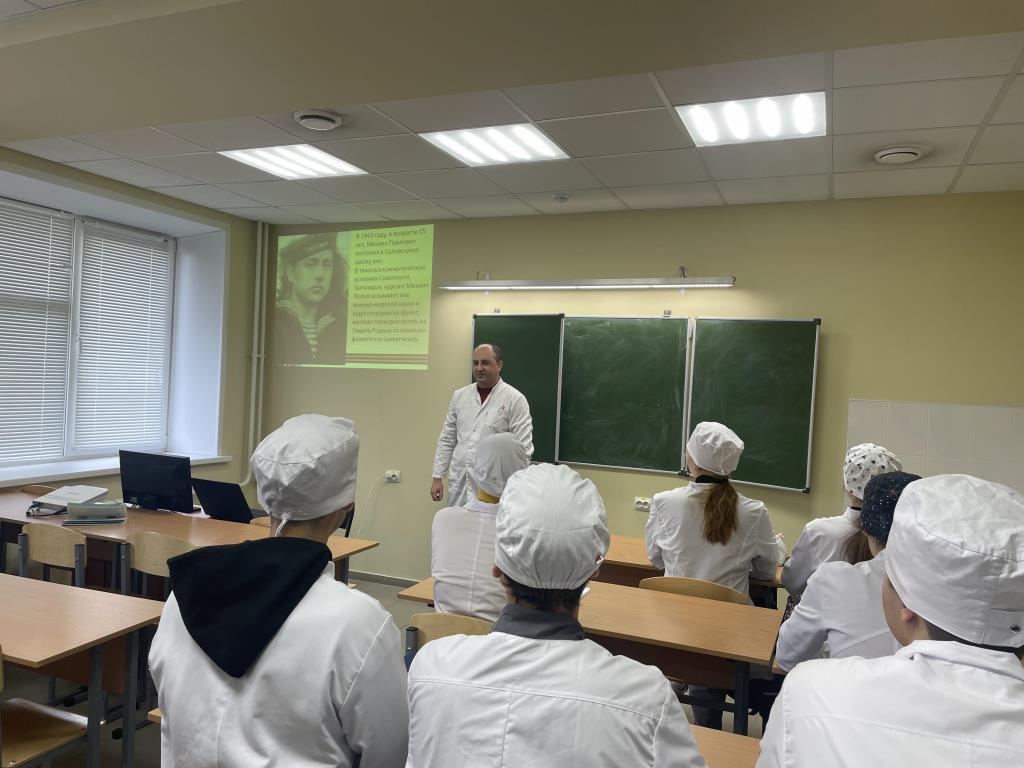 Доцент кафедры физики, информатики и математики Гранкин Валерий Егорович рассказал студентам о фактах боевой и трудовой биографии профессора Курского государственного медицинского университета Михаила Павловича Попова.