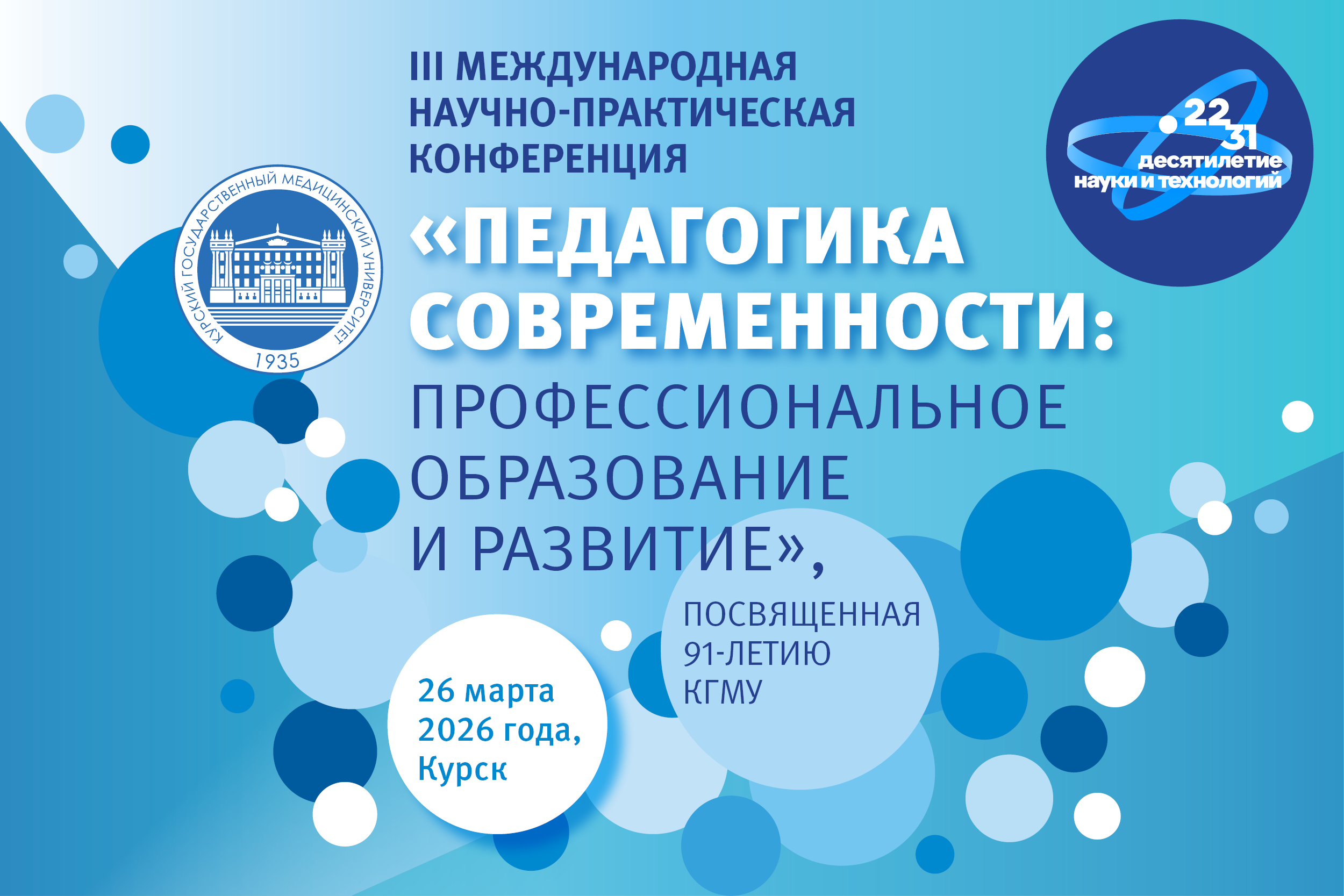 Приглашаем Вас принять участие в III Международной научно-практической конференции «Педагогика современности: профессиональное образование и развитие», которая состоится в Курском государственном медицинском университете 26 марта 2026 года.