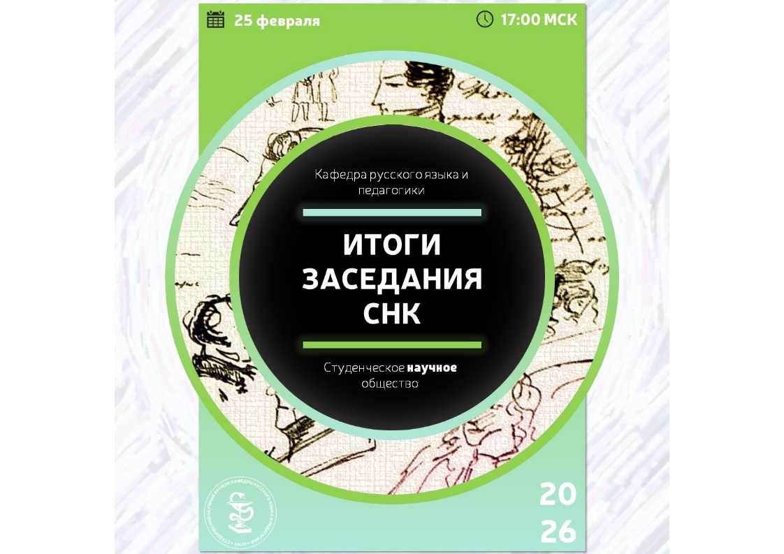 25 ФЕВРАЛЯ СОСТОЯЛОСЬ ПЕРВОЕ В 2026 ГОДУ ЗАСЕДАНИЕ СНК КАФЕДРЫ РУССКОГО ЯЗЫКА И ПЕДАГОГИКИ