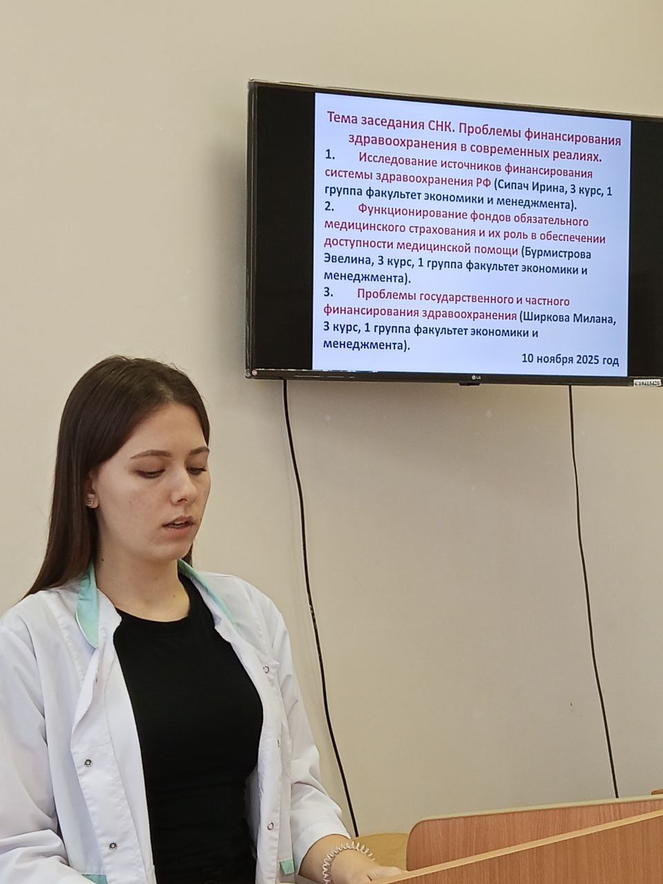 10 ноября 2025 г. на кафедре экономики и менеджмента состоялось заседание Студенческого научного кружка, посвященное одной из самых острых социально-экономических тем - проблемам финансирования здравоохранения.