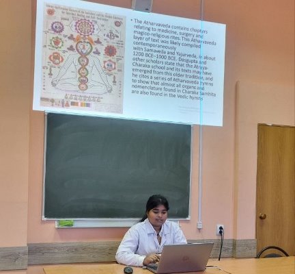 On November 27, 2025, at the 2nd International Students’ Scientific Practical Conference "Science in the Classroom: Educational Technologies for Research Activities" 14 reports of the 1st-2nd year students of the International Medical Institute of KSMU were presented at the section 3.3. “Sociocultural research in the history of medicine”. The research topics covered a wide range of problems, from the history of traditional medicine in ancient Eastern civilizations to modern challenges in public health, such as the activities against tuberculosis and Ebola hemorrhagic fever. The presentations on the use of traditional methods of Chinese and Indian medicine in modern practice, as well as on the outstanding personalities who have made significant contributions to the development of public health in Sri Lanka, Malaysia, and India, caused lively interesting discussions. The foreign students learned a lot about the history of cardiology, neurology, surgery, and homeopathy at different stages of historical development.
