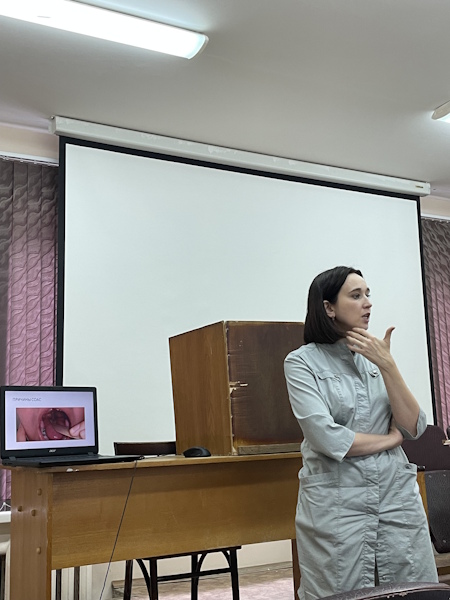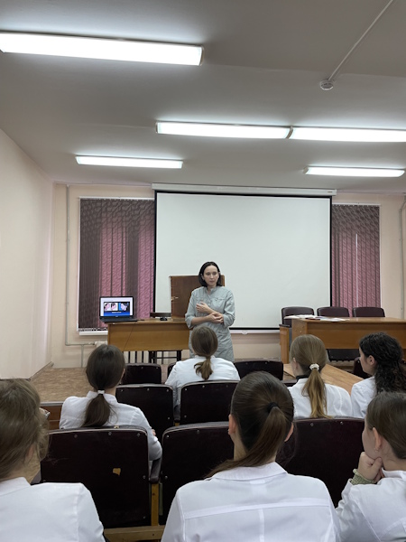 At the meeting, club members discussed the prevalence of OSA and its impact on health and quality of life. During the meeting, the responsible lecturer, Associate Professor of the Department, PhD Nadezhda Leonidovna Kostina, spoke about modern diagnostic methods for OSA, including polysomnography, and discussed various treatment methods, from conservative to surgical.