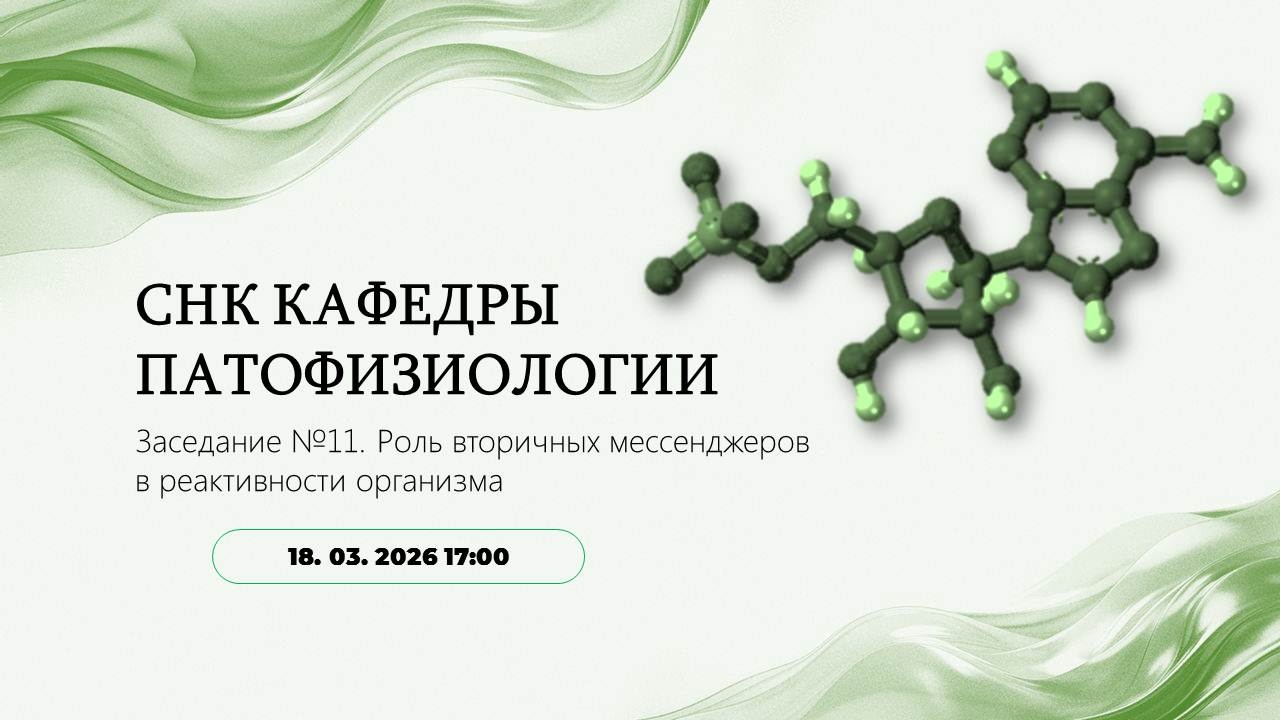 Приглашаем на одиннадцатое заседание СНК по патофизиологии, которое состоится 18 марта 2026 года в 17:00 на кафедре патофизиологии (стоматологический корпус, 5 этаж, учебная комната №3).