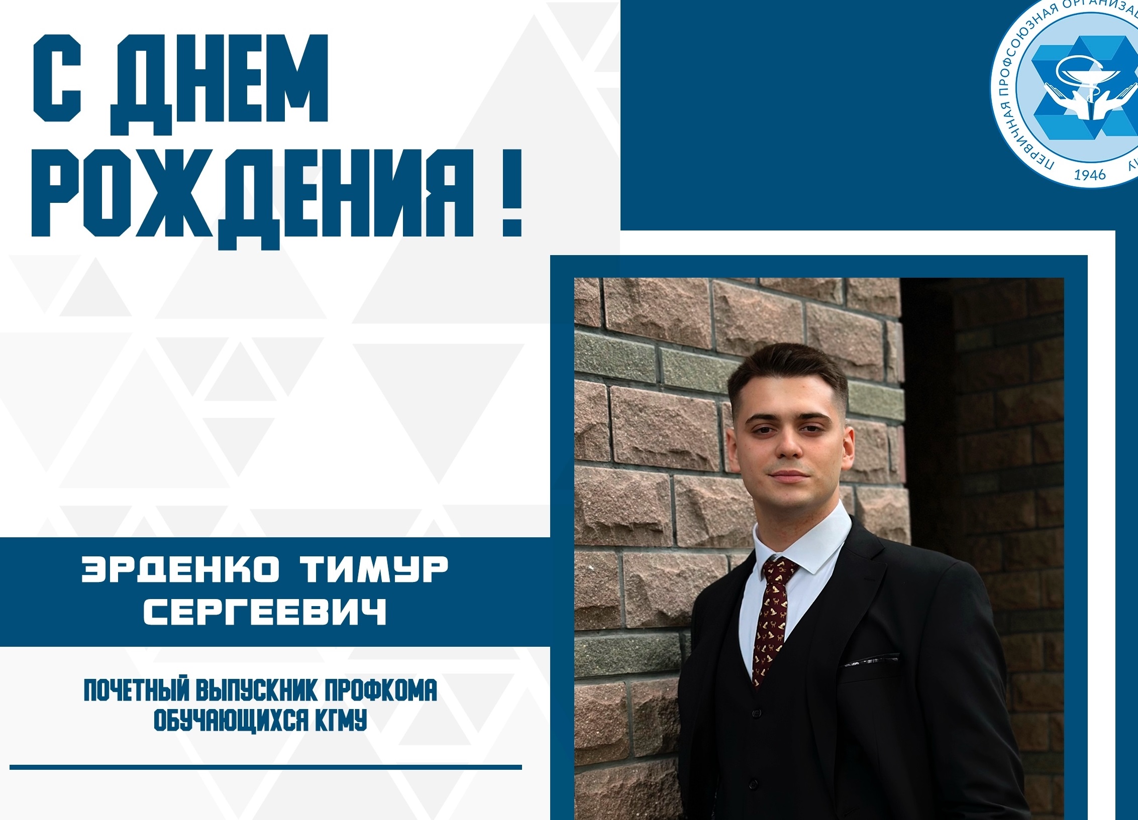 ПОЗДРАВЛЯЕМ С ДНЁМ РОЖДЕНИЯ ПОЧЁТНОГО ВЫПУСКНИКА ПРОФКОМА ОБУЧАЮЩИХСЯ КГМУ