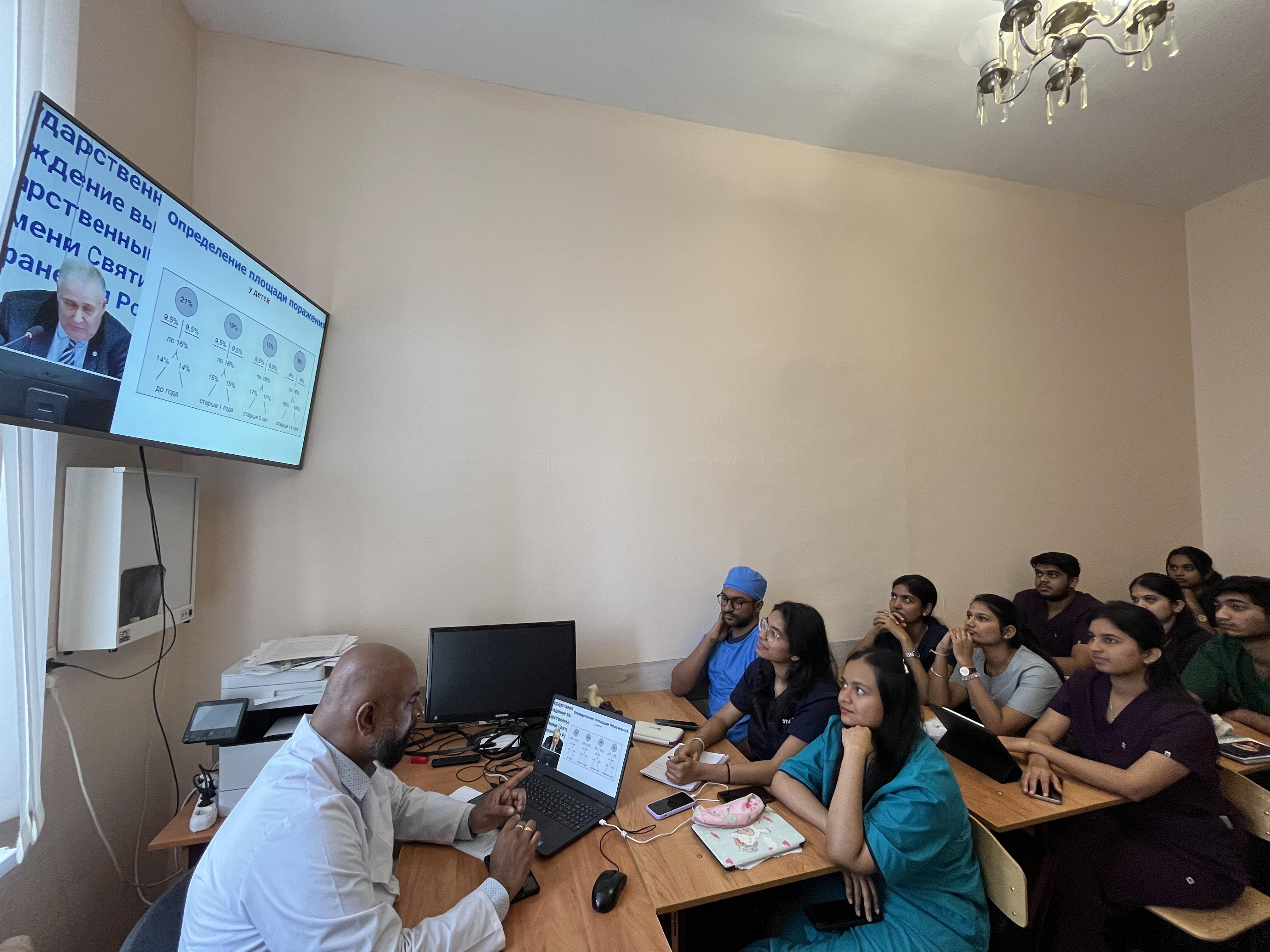 В рамках реализации проекта «Медицинский лекторий Минздрава России» 28.10.25 г. на кафедре травматологии и ортопедии КГМУ в формате видеоконференции проведена лекция главного внештатного комбустиолога Алексеева Андрея Анатольевича (ФГБОУ ВО «Луганский государственный медицинский университет имени Святителя Луки» Минздрава России) на тему: «Комбустиология в России: вопросы организации и оказания медицинской помощи».