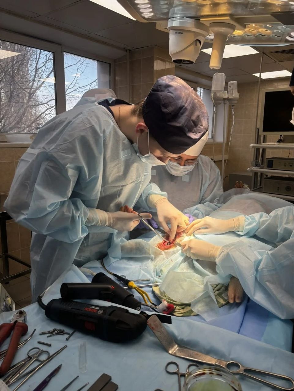 The procedure performed was "Open Reduction and Internal Fixation of diaphyseal fracture of Right Tibia with Osteosynthesis Plates and Screws", carried out by students: • Surgeon-Alexander Andreevich Ivashov (4th year, Medical faculty) • First assitant surgeon- Chai Chon Chin (6th year, IMI) • Second assistant surgeon - Priyanka Wahi (4th year, IMI) • Surgical nurse-Elizaveta Valerievna Andrianova ( 3rd year, Pediatric surgery).