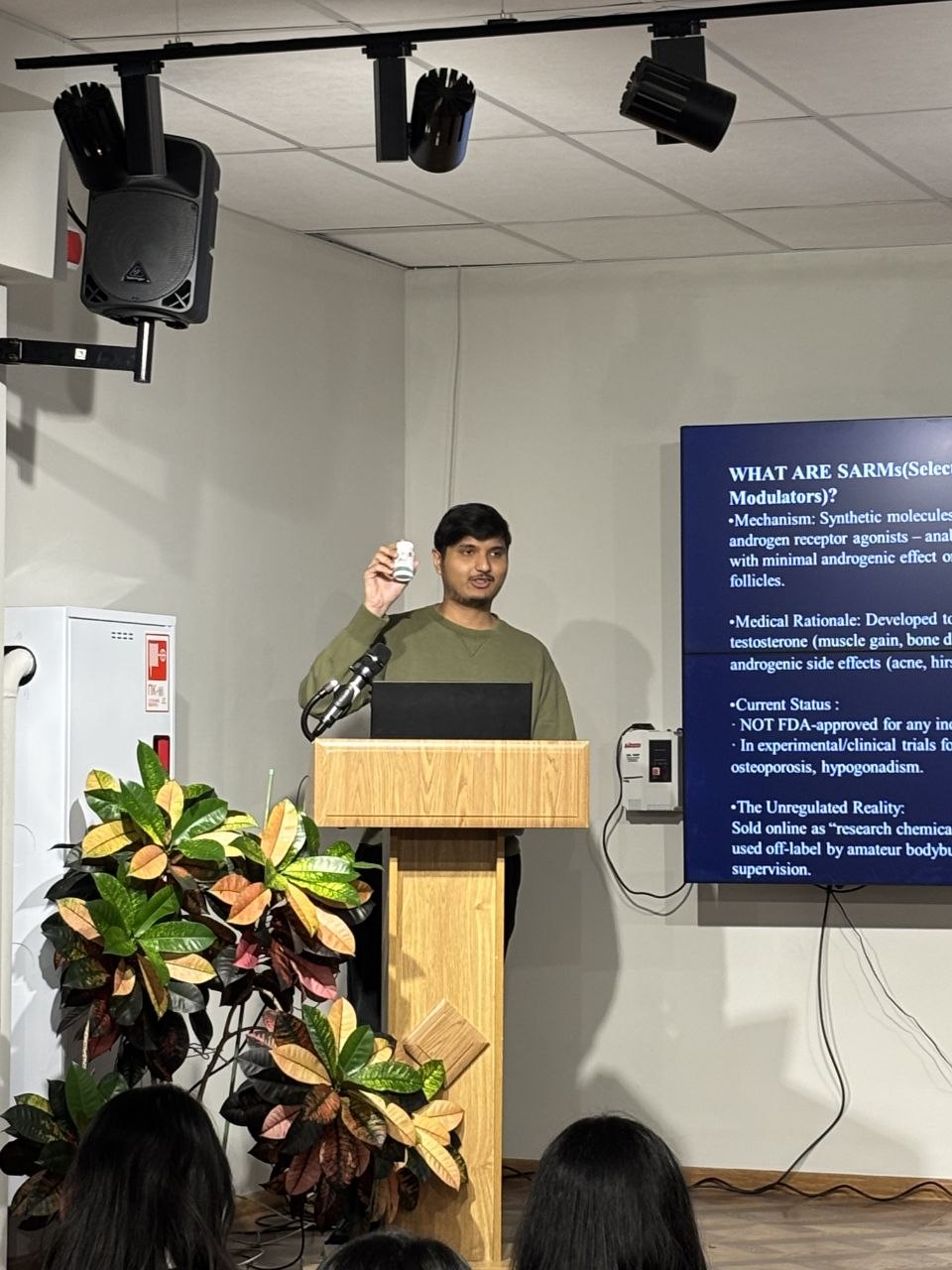 The session that was held at KSMU University Clinic Library (ул. Маяковского, 85) with the theme "Emerging Paradigms in Sports Pharmacology: Innovation, Integrity, and Its Future Perspective" truly stood out as a space where curiosity met purpose, and where students didn’t just present research, they brought it to life .