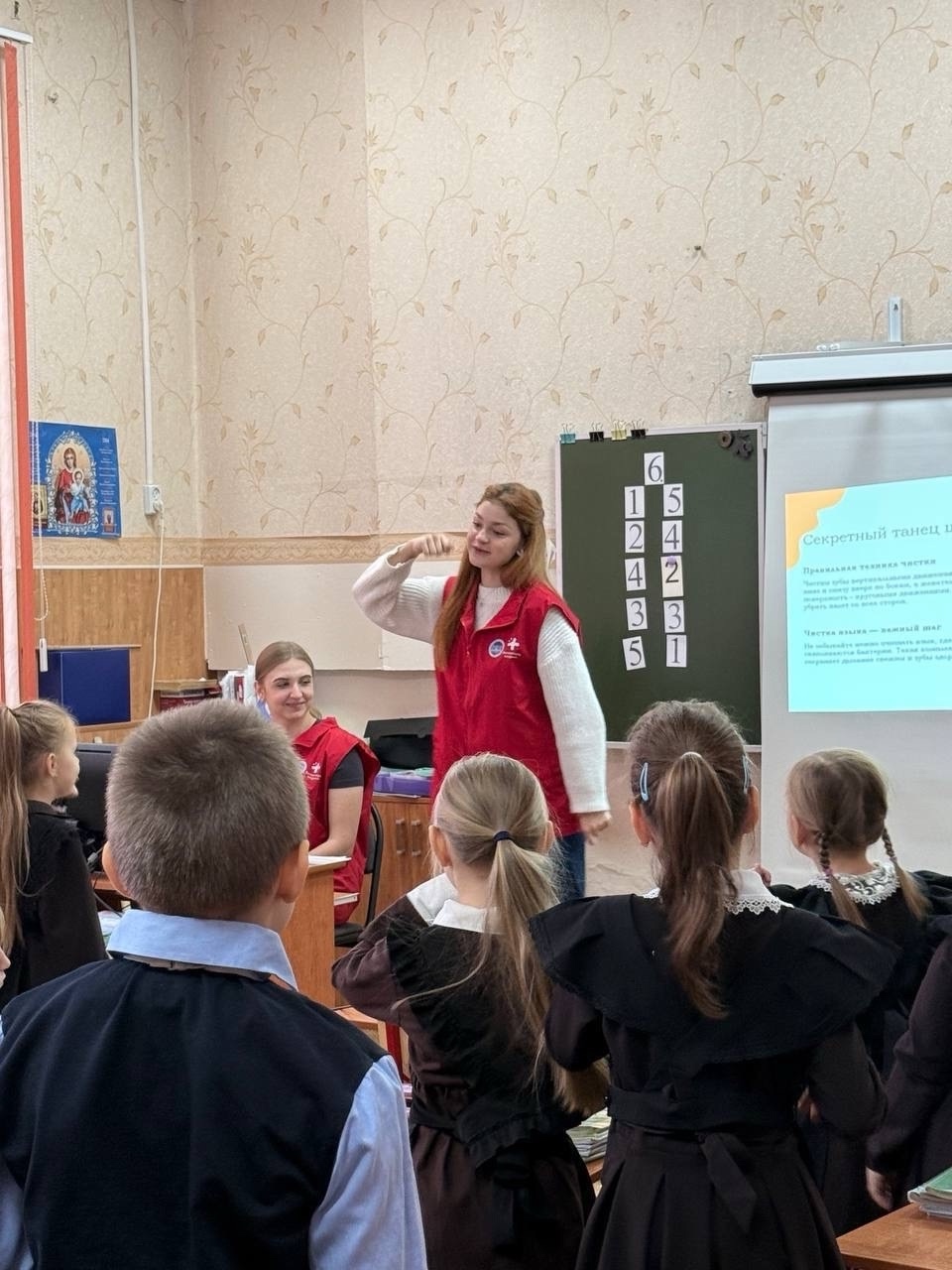 Волонтеры-медики провели занятие для начальных классов школы №32