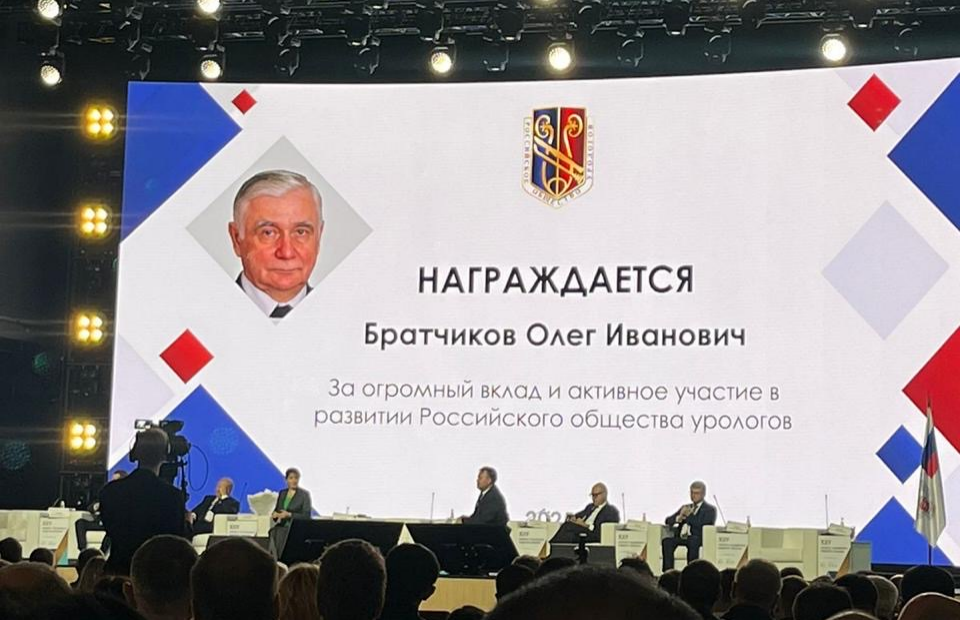 На церемонии открытия Конгресса Президент Российского общества урологов, ректор «Сеченовского университета», Председатель Совета ректоров медицинских и фармацевтических вузов России, академик РАН, профессор П.В. Глыбочко вручил высшую награду Российского общества урологов Золотую медаль «За огромный вклад и активное участие в развитии Российского общества урологов» заведующему кафедрой урологии Курского государственного медицинского университета профессору Братчикову Олегу Ивановичу.